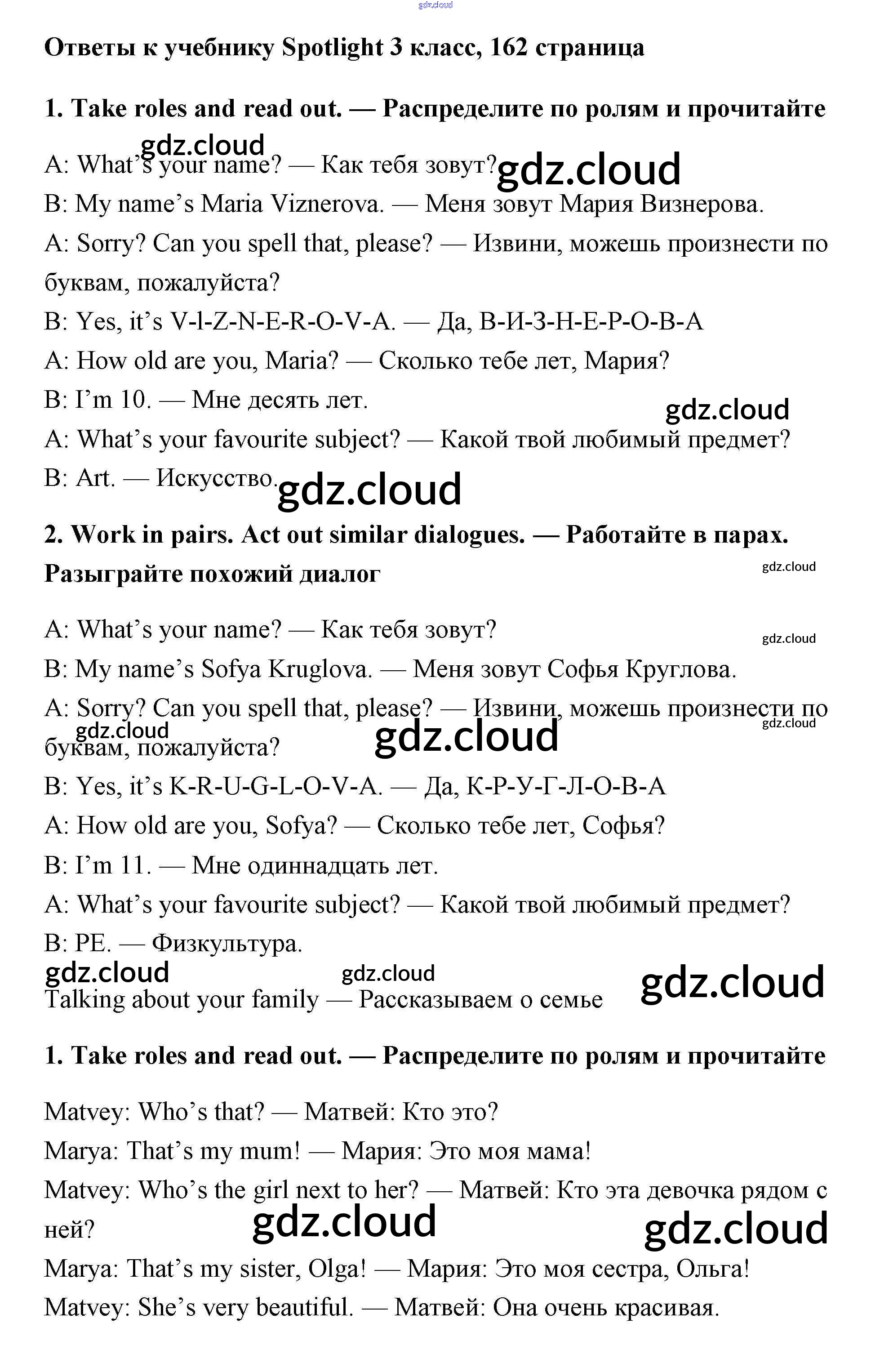 Ответ на задание 162 Учебник Английский язык за 3 (третий) класс Быкова, Эванс, Дули, Поспелова Spotlight 2015 ФГОС онлайн и без номера телефона.