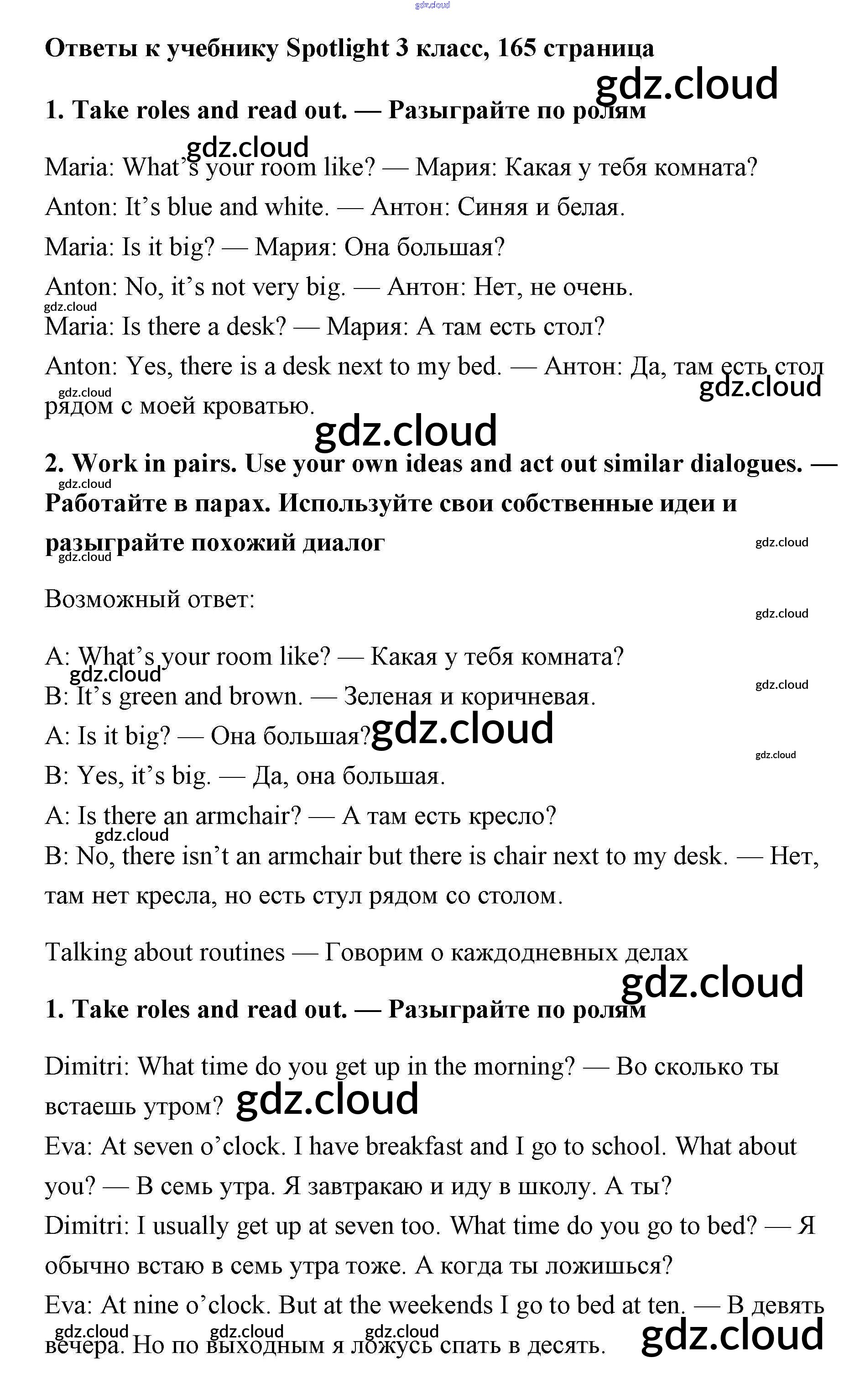 Ответ на задание 165 Учебник Английский язык за 3 (третий) класс Быкова, Эванс, Дули, Поспелова Spotlight 2015 ФГОС онлайн и без номера телефона.