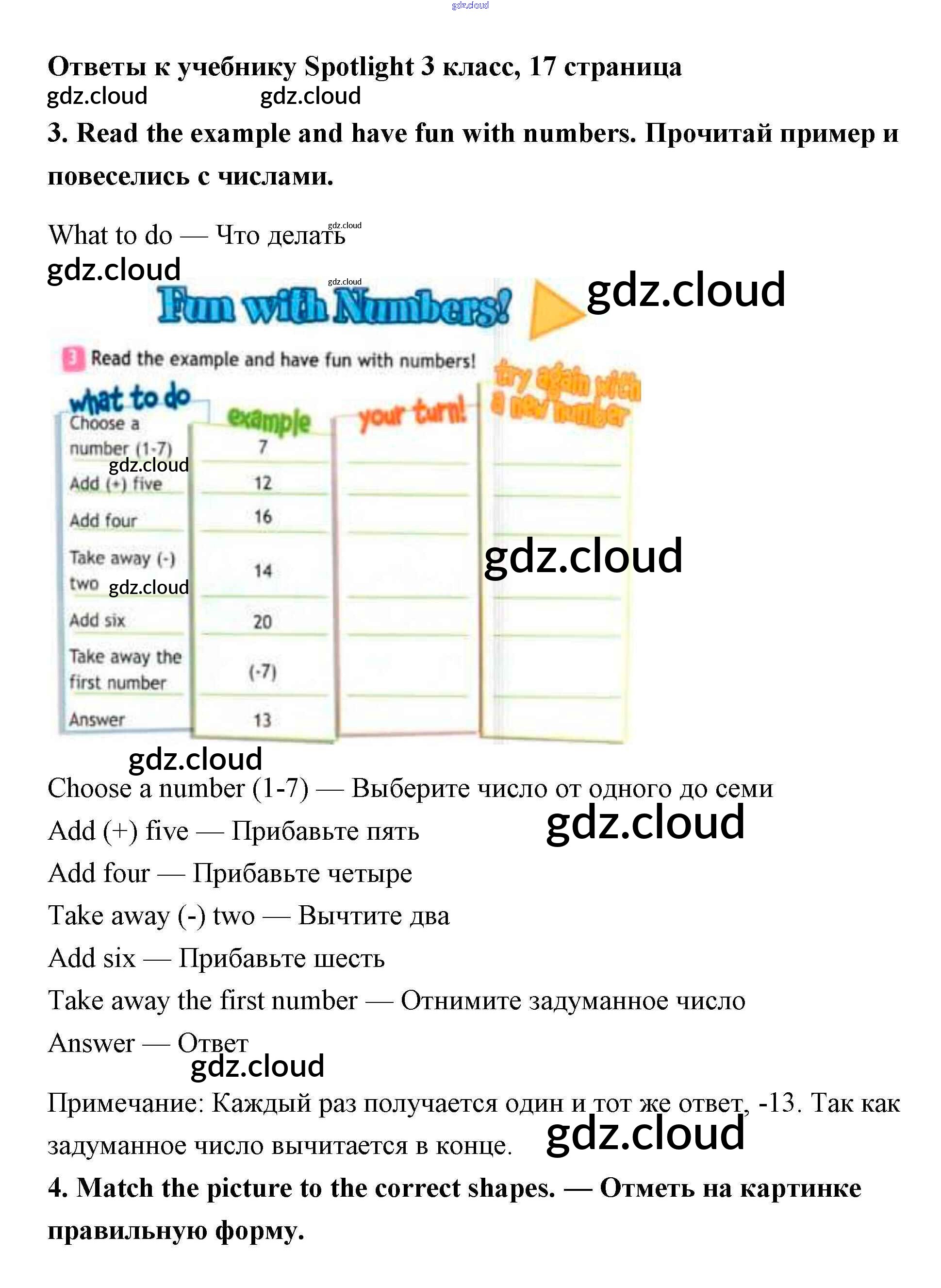 Ответ на задание 17 Учебник Английский язык за 3 (третий) класс Быкова, Эванс, Дули, Поспелова Spotlight 2015