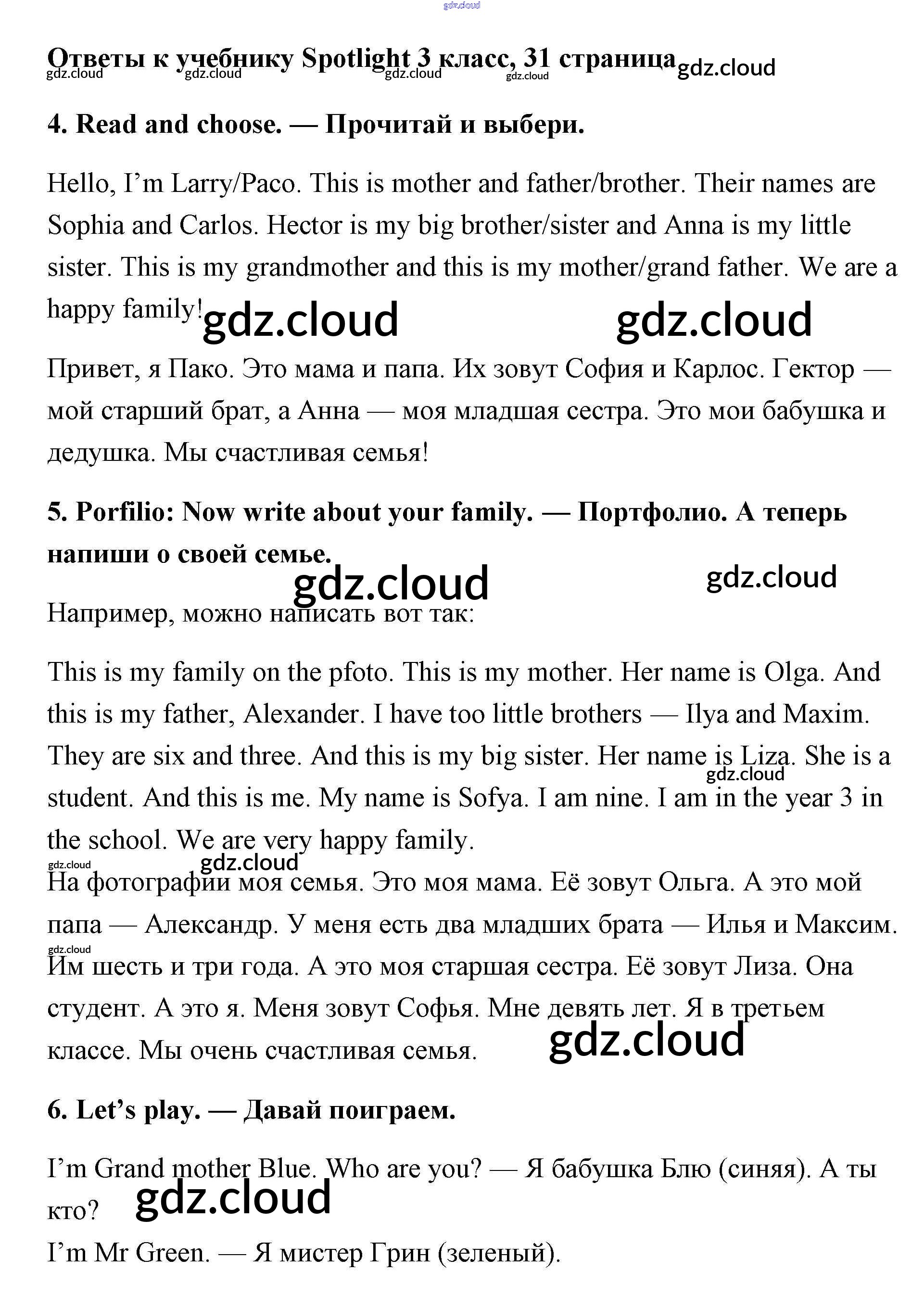 Ответ на задание 31 Учебник Английский язык за 3 (третий) класс Быкова, Эванс, Дули, Поспелова Spotlight 2015