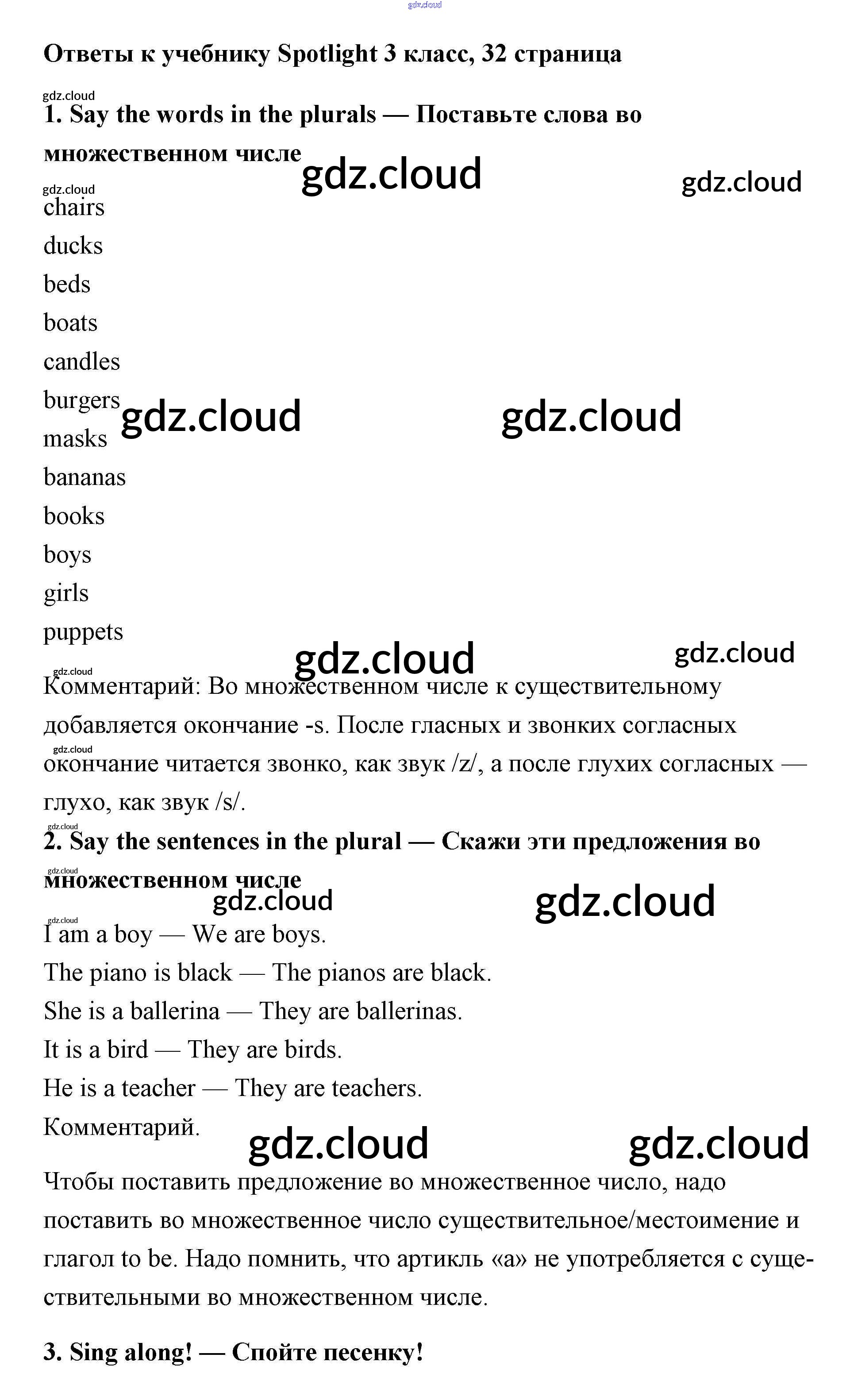 Ответ на задание 32 Учебник Английский язык за 3 (третий) класс Быкова, Эванс, Дули, Поспелова Spotlight 2015