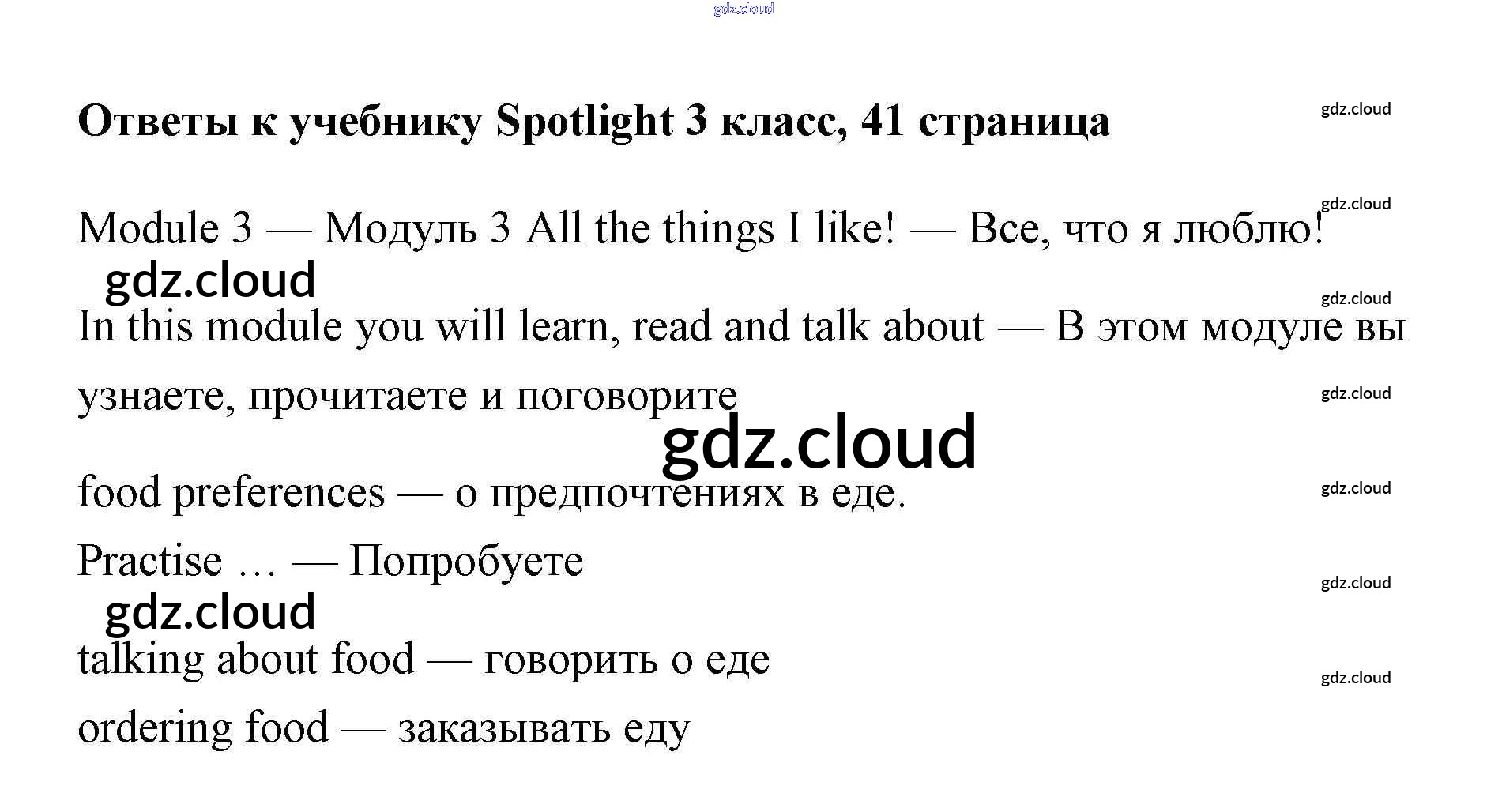 Ответ на задание 41 Учебник Английский язык за 3 (третий) класс Быкова, Эванс, Дули, Поспелова Spotlight 2015