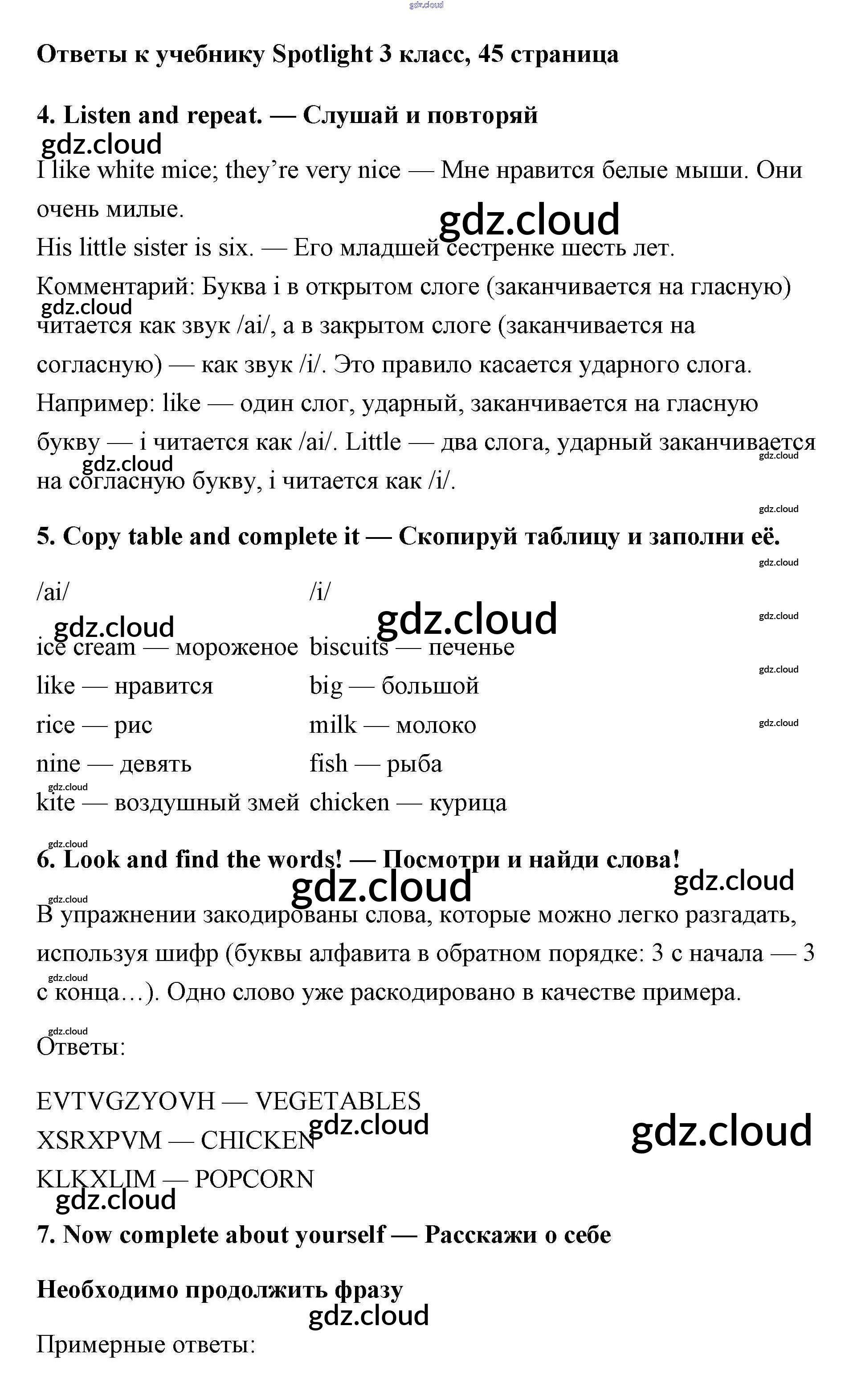 Ответ на задание 45 Учебник Английский язык за 3 (третий) класс Быкова, Эванс, Дули, Поспелова Spotlight 2015