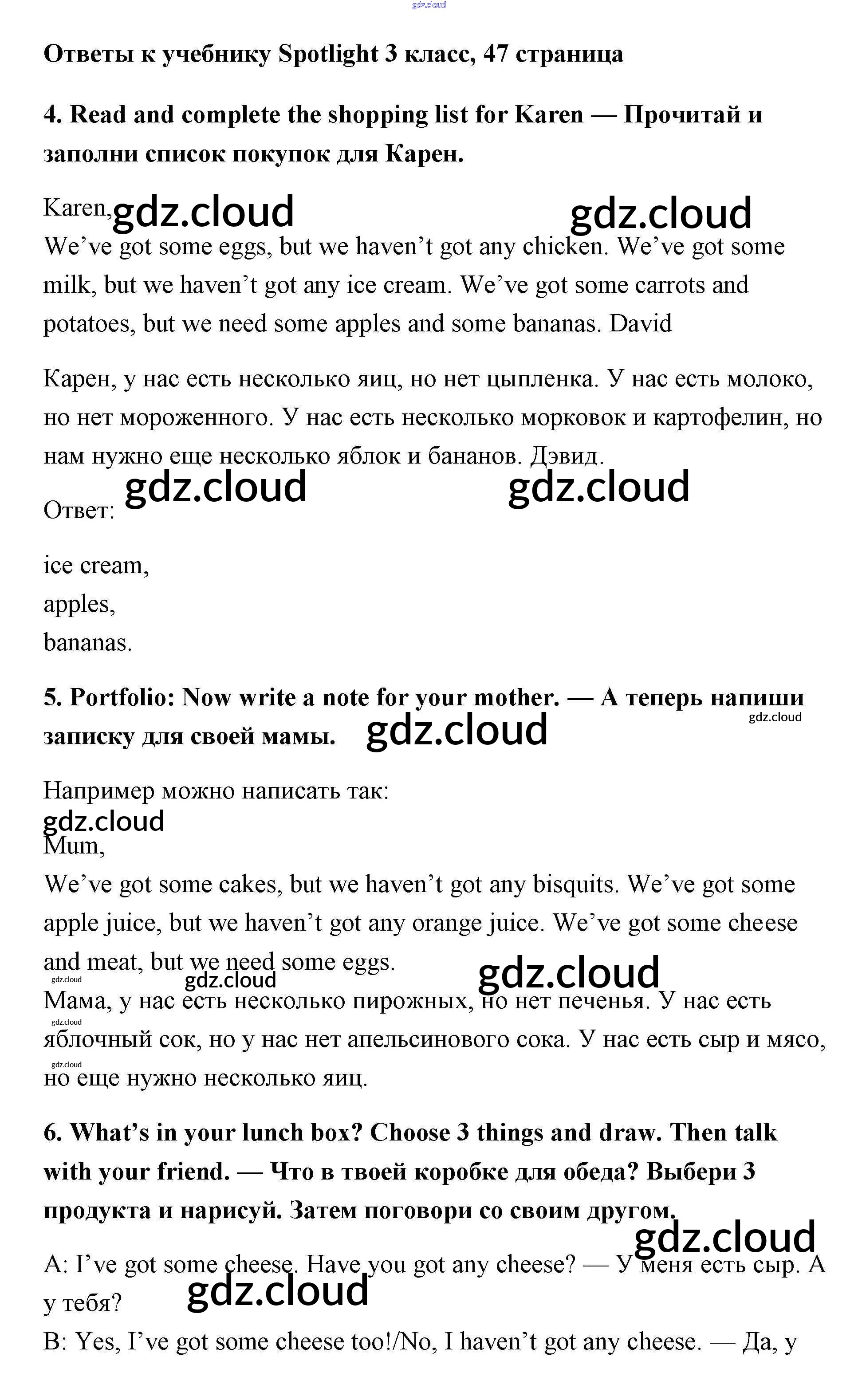 Ответ на задание 47 Учебник Английский язык за 3 (третий) класс Быкова, Эванс, Дули, Поспелова Spotlight 2015
