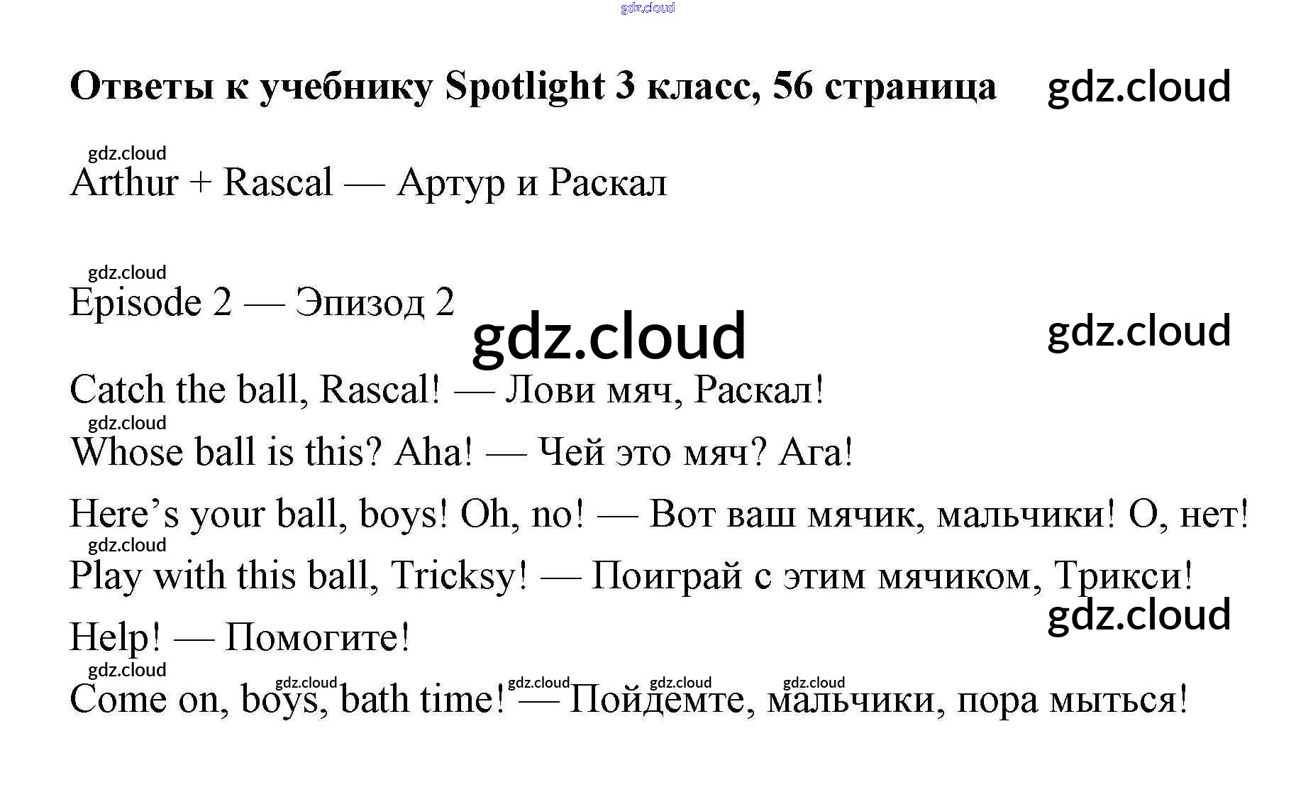 Ответ на задание 56 Учебник Английский язык за 3 (третий) класс Быкова, Эванс, Дули, Поспелова Spotlight 2015