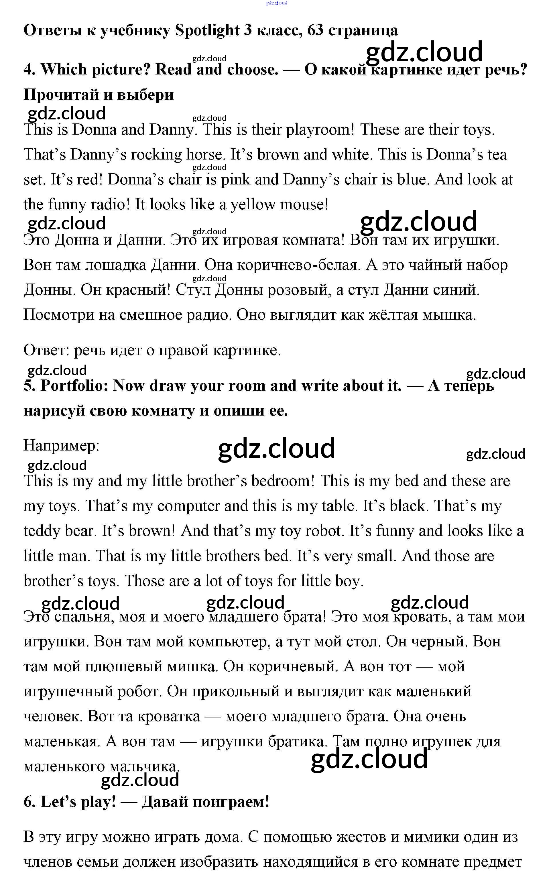 Ответ на задание 63 Учебник Английский язык за 3 (третий) класс Быкова, Эванс, Дули, Поспелова Spotlight 2015