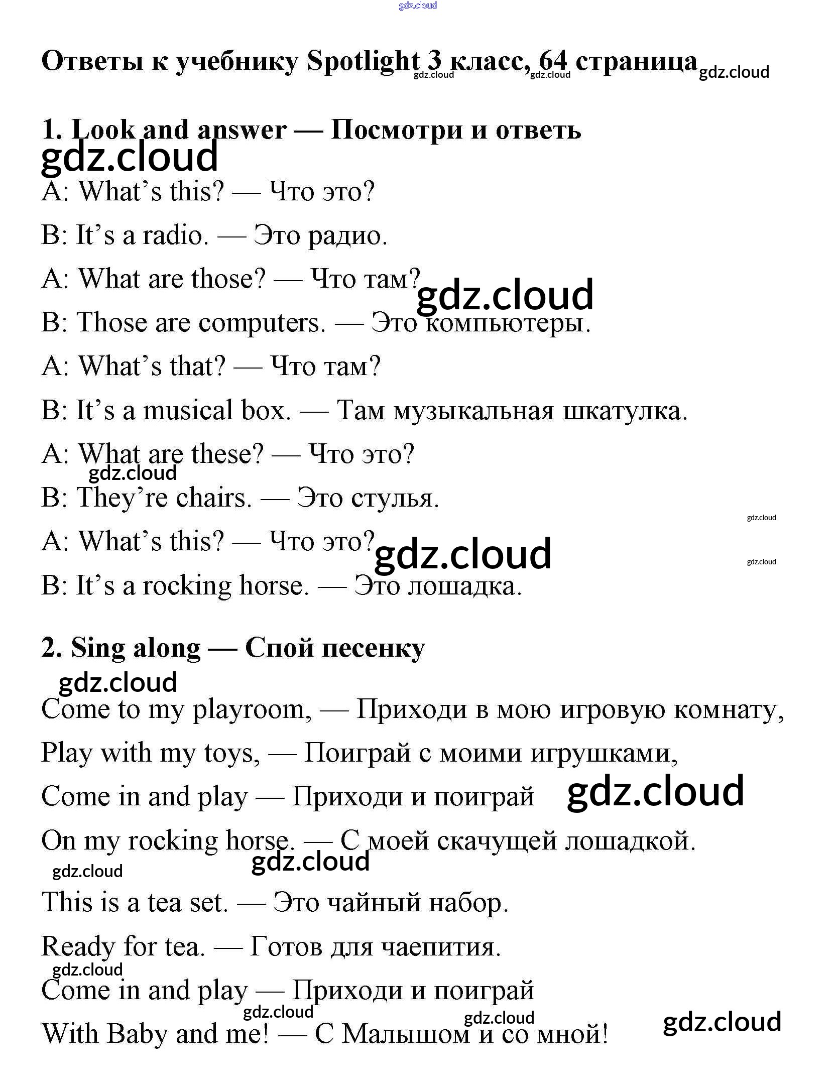 Ответ на задание 64 Учебник Английский язык за 3 (третий) класс Быкова, Эванс, Дули, Поспелова Spotlight 2015