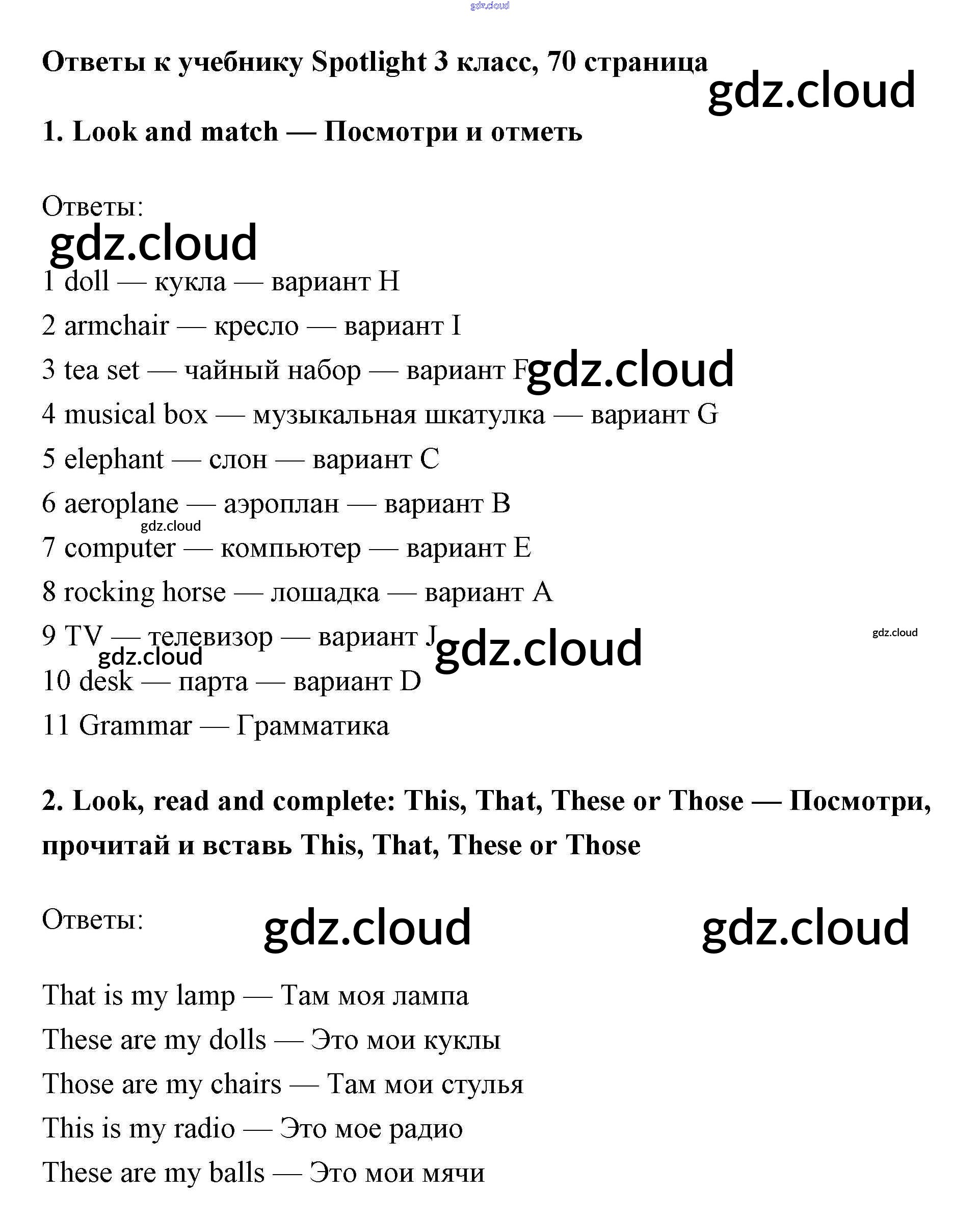 Ответ на задание 70 Учебник Английский язык за 3 (третий) класс Быкова, Эванс, Дули, Поспелова Spotlight 2015
