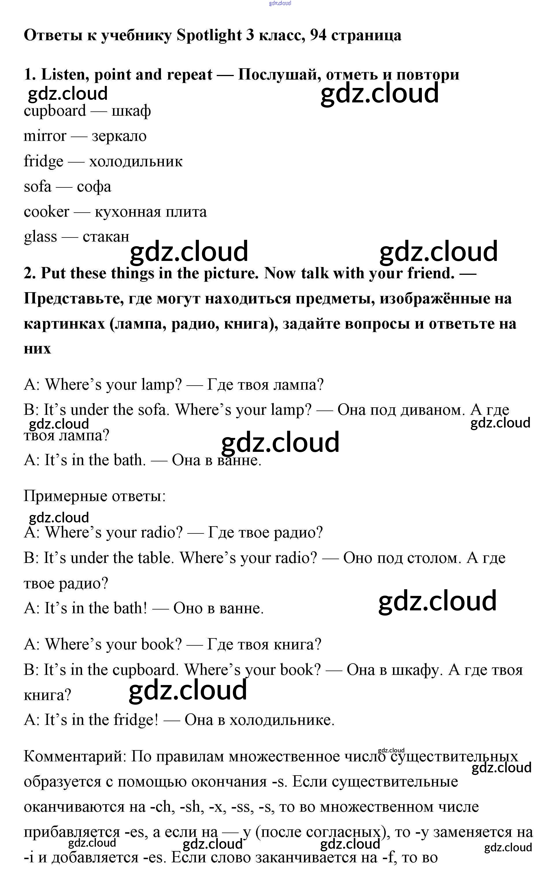 Ответ на задание 94 Учебник Английский язык за 3 (третий) класс Быкова, Эванс, Дули, Поспелова Spotlight 2015