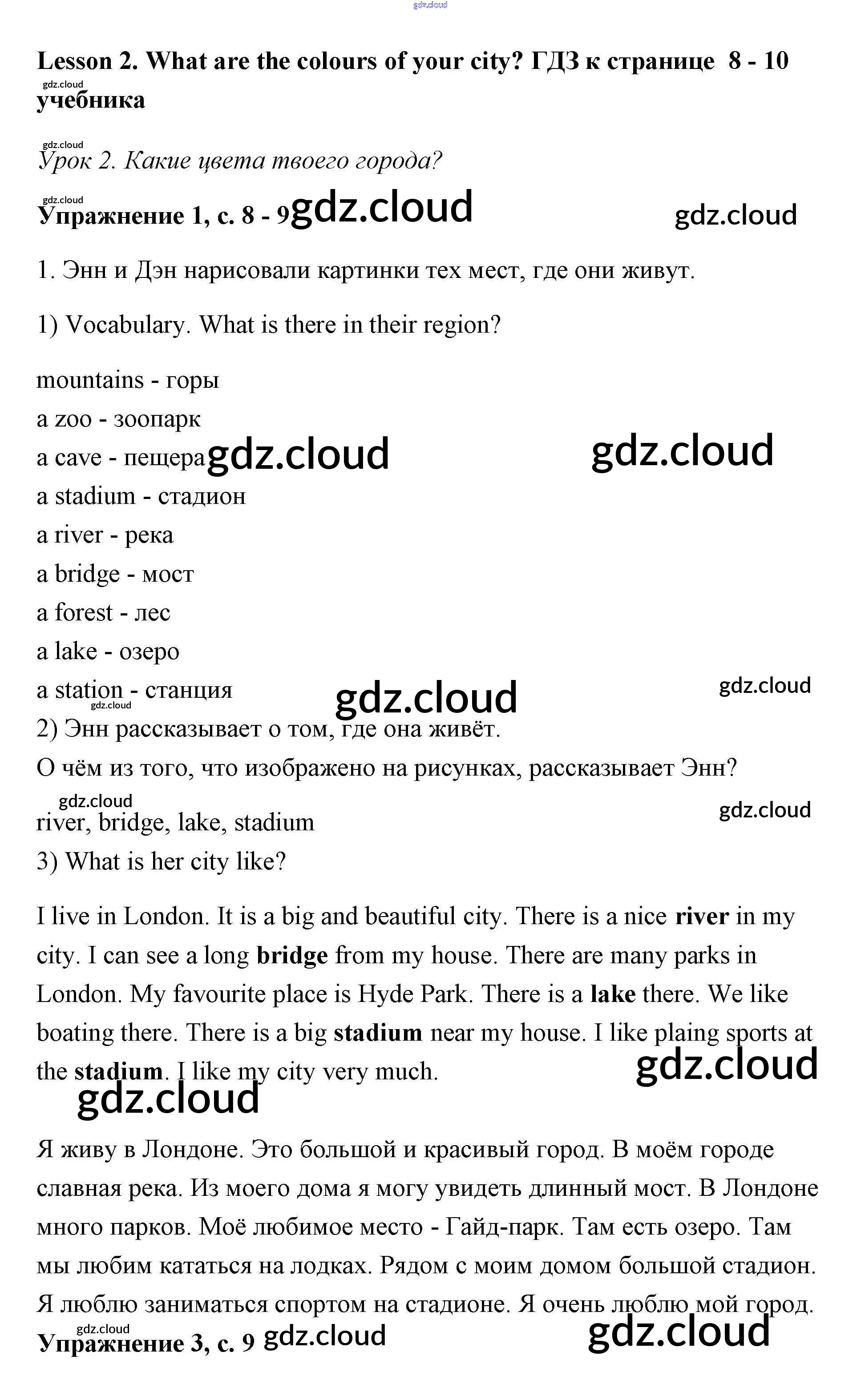 Ответ на задание Lesson 2 (страницы 8 – 10) Учебник Английский язык за 3 (третий) класс Кузовлев, Лапа, Костина 2016 Часть 1, 2