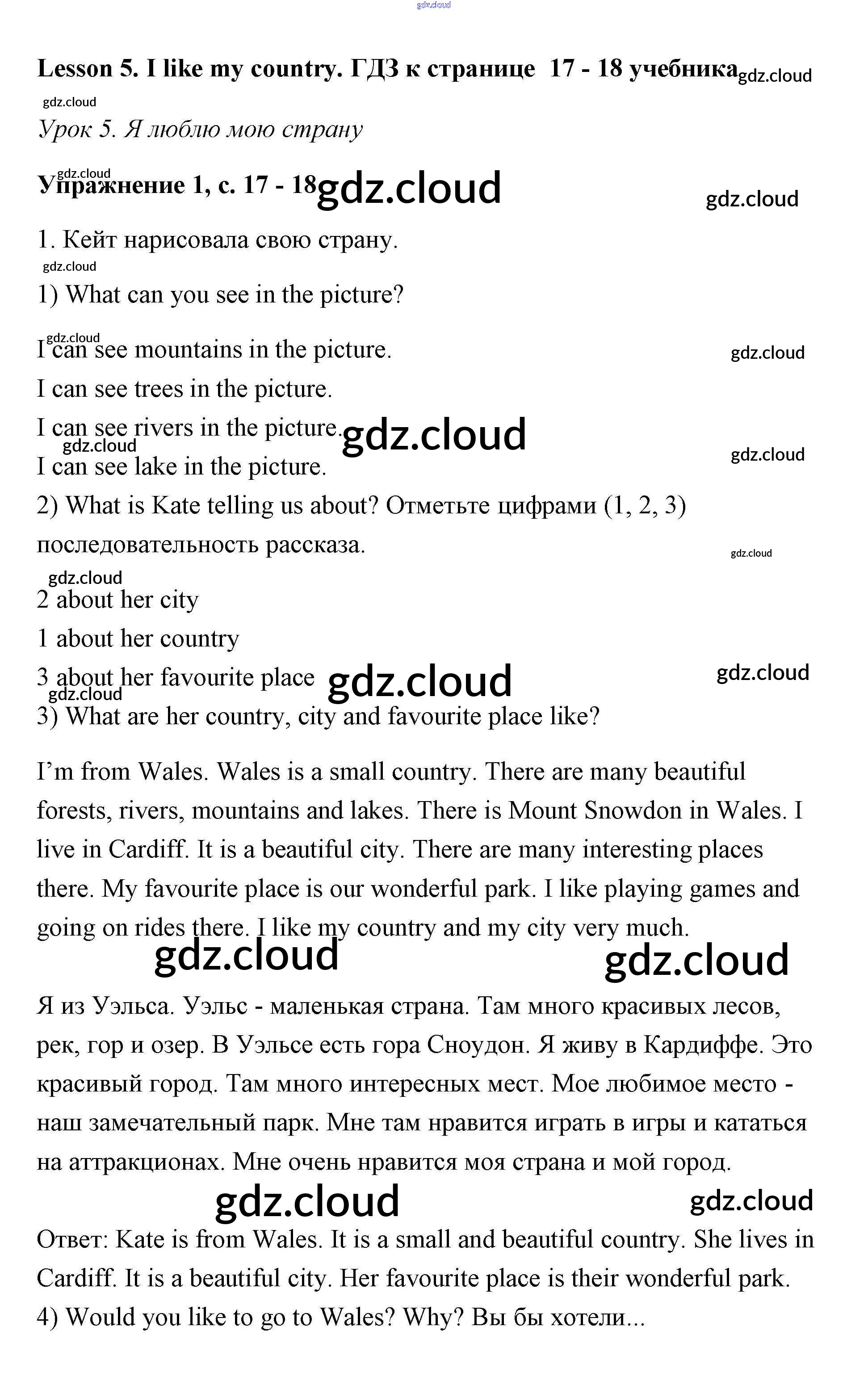 Ответ на задание Lesson 5 (страницы 17 – 18) Учебник Английский язык за 3 (третий) класс Кузовлев, Лапа, Костина 2016 Часть 1, 2