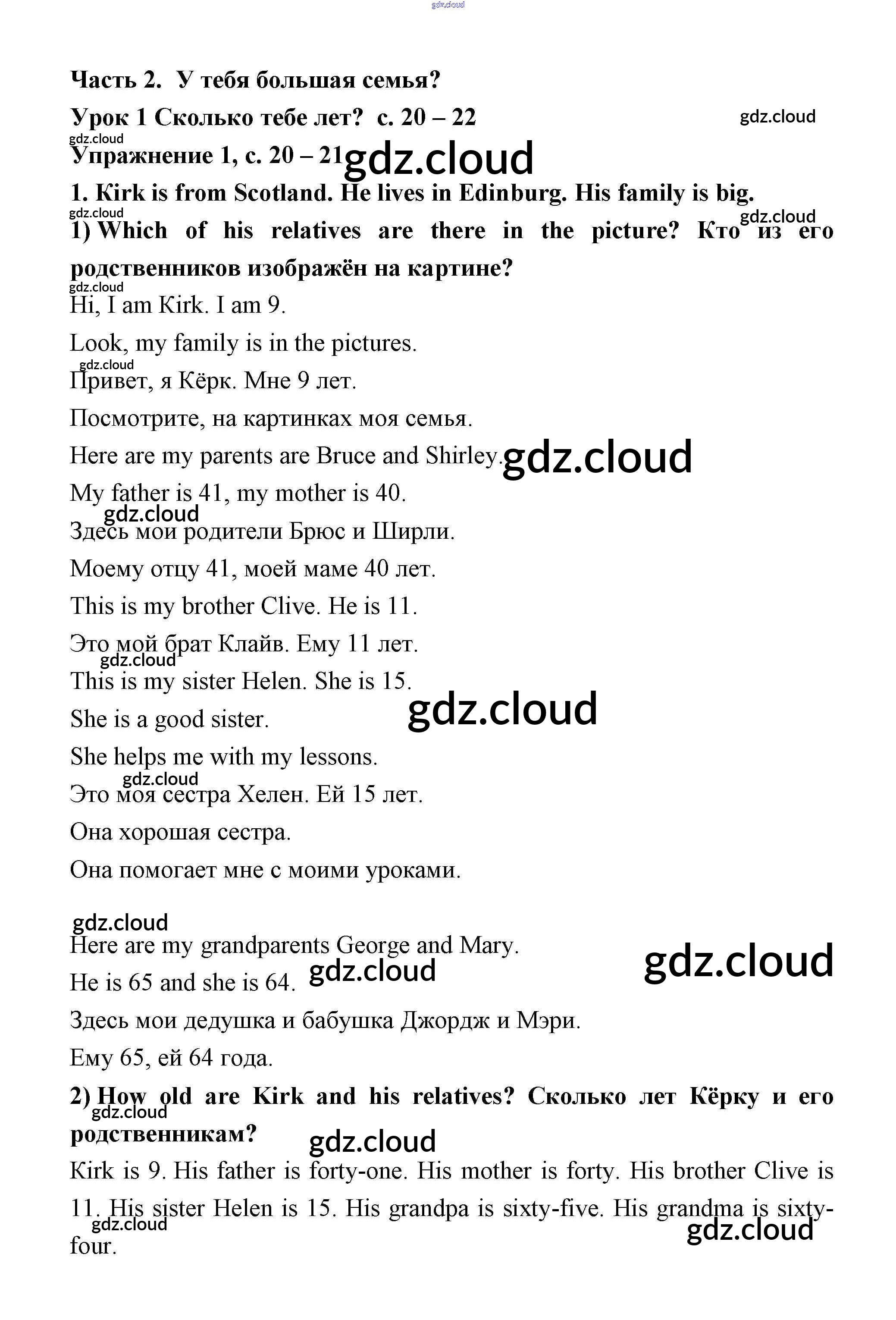 Ответ на задание Lesson 1 (страницы 20 – 22) Учебник Английский язык за 3 (третий) класс Кузовлев, Лапа, Костина 2016 Часть 1, 2