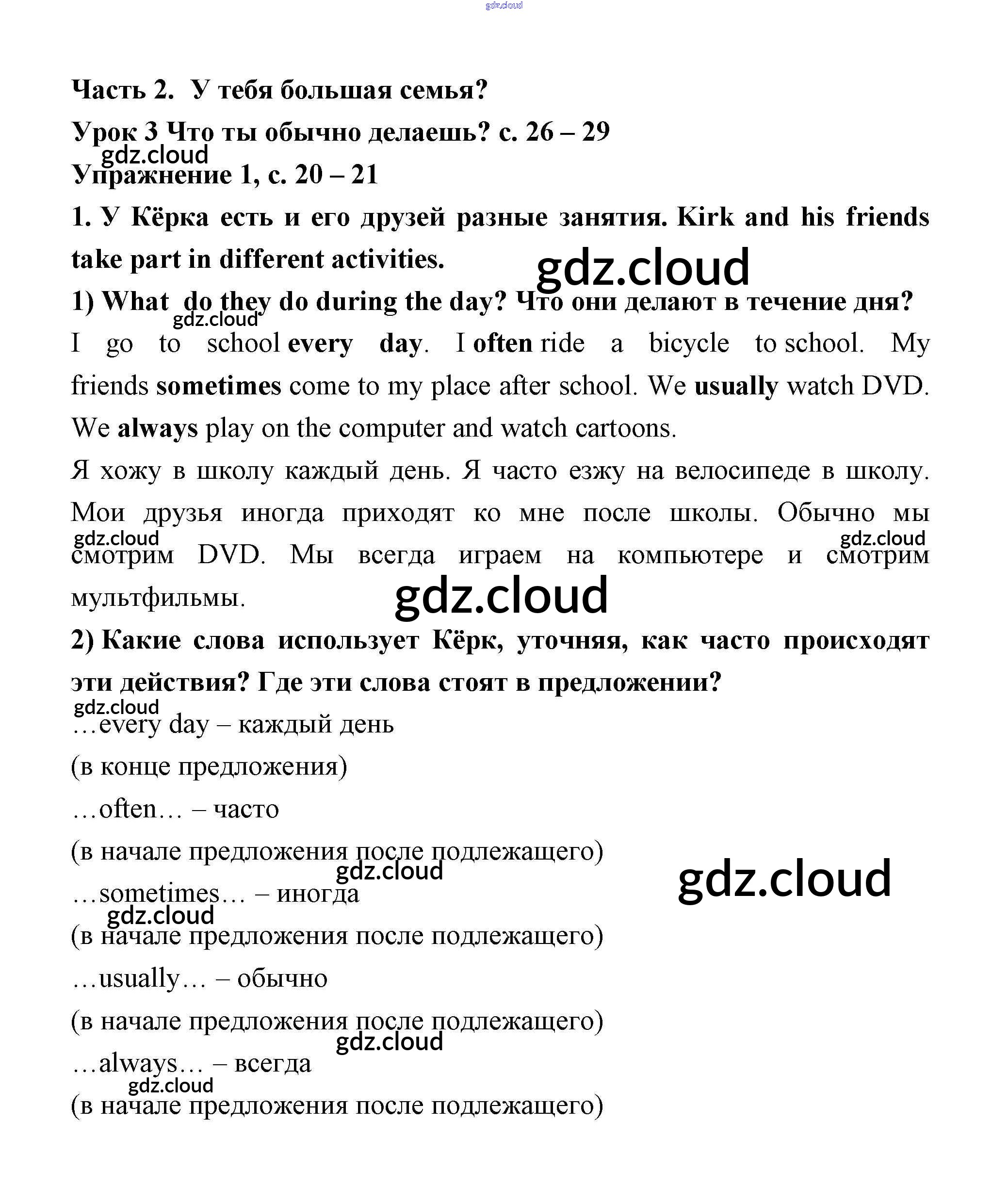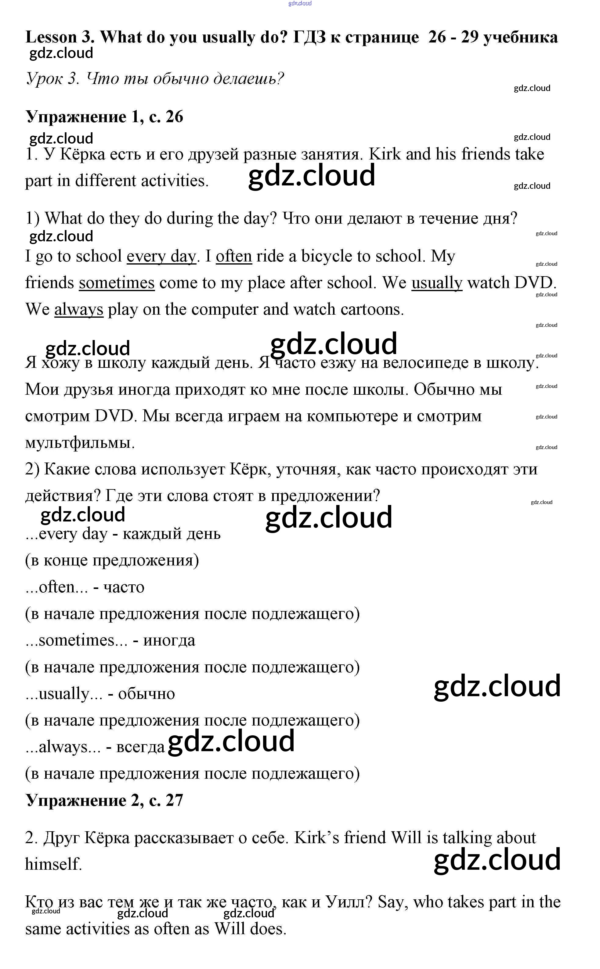 Ответ на задание Lesson 3 (страницы 26 – 29) Учебник Английский язык за 3 (третий) класс Кузовлев, Лапа, Костина 2016 Часть 1, 2
