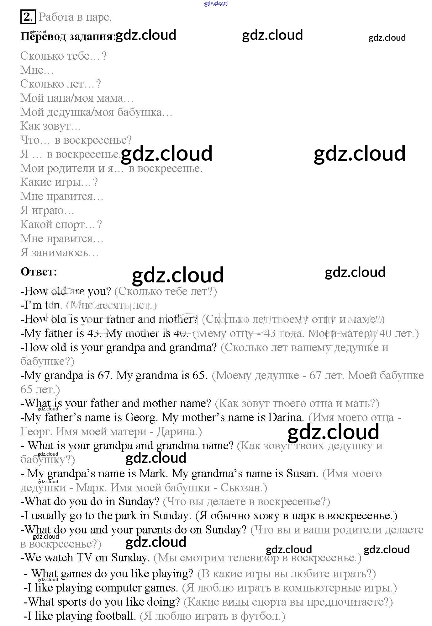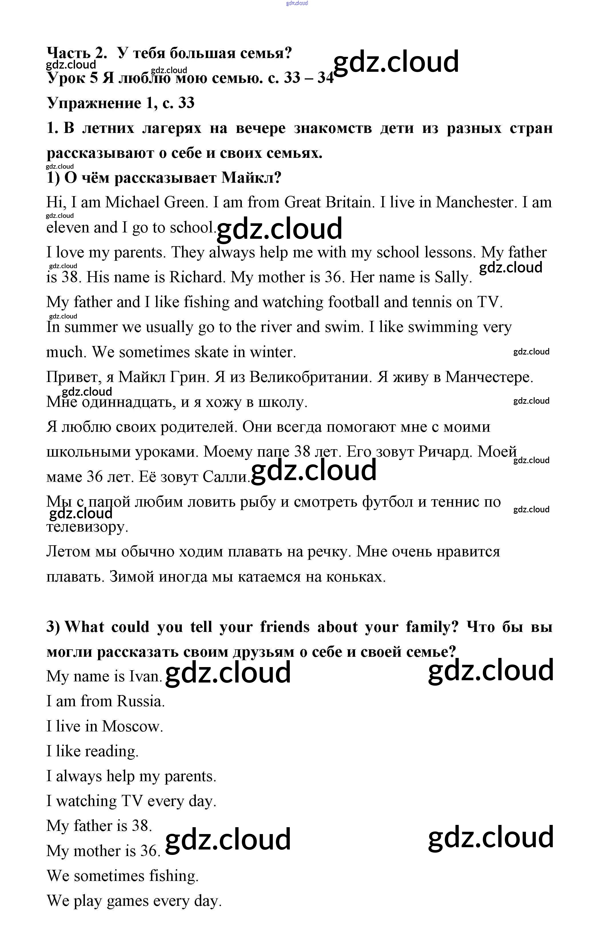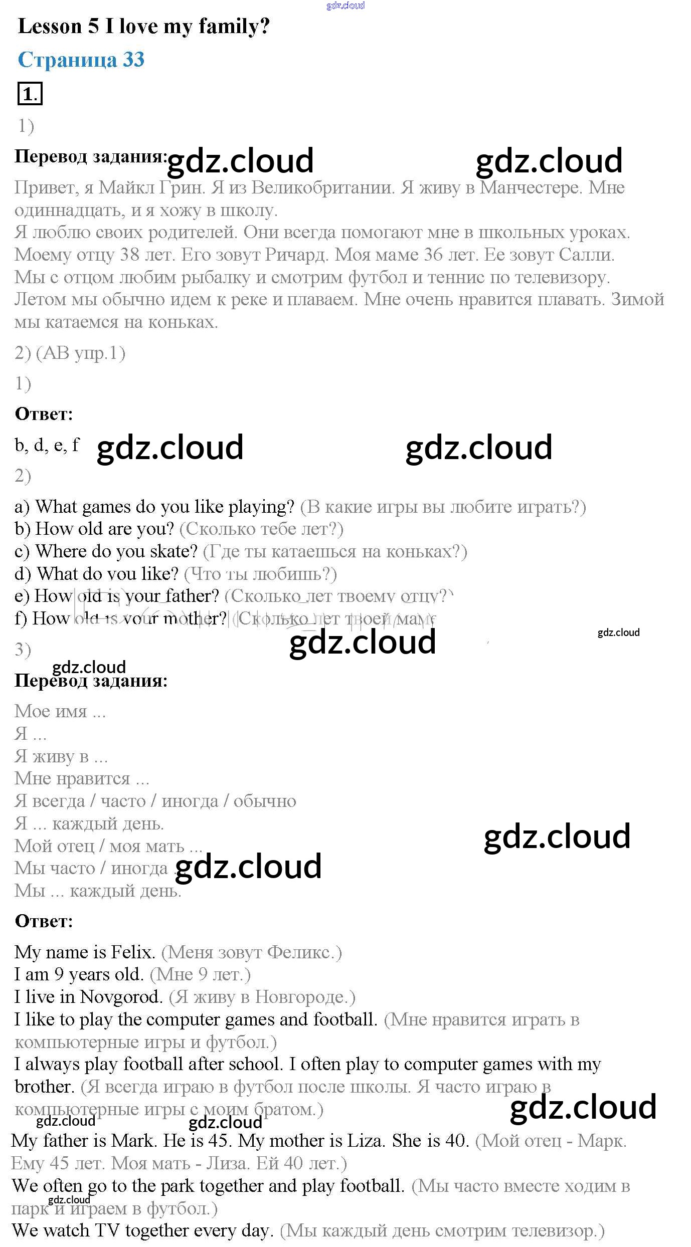 Ответ на задание Lesson 5 (страницы 33 – 34 Учебник Английский язык за 3 (третий) класс Кузовлев, Лапа, Костина 2016 Часть 1, 2