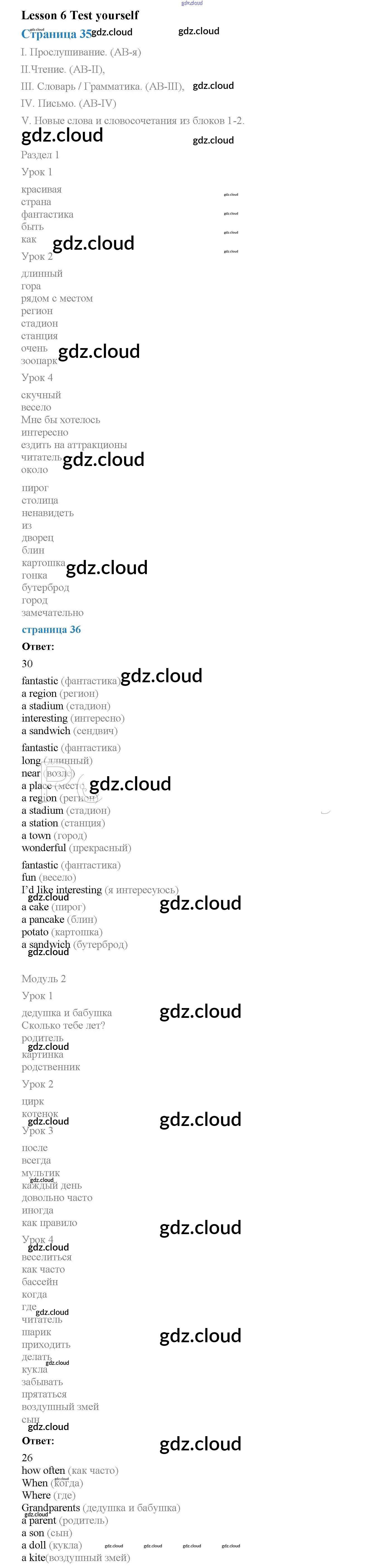 Ответ на задание Lesson 6 (страницы 35 – 36) Учебник Английский язык за 3 (третий) класс Кузовлев, Лапа, Костина 2016 Часть 1, 2