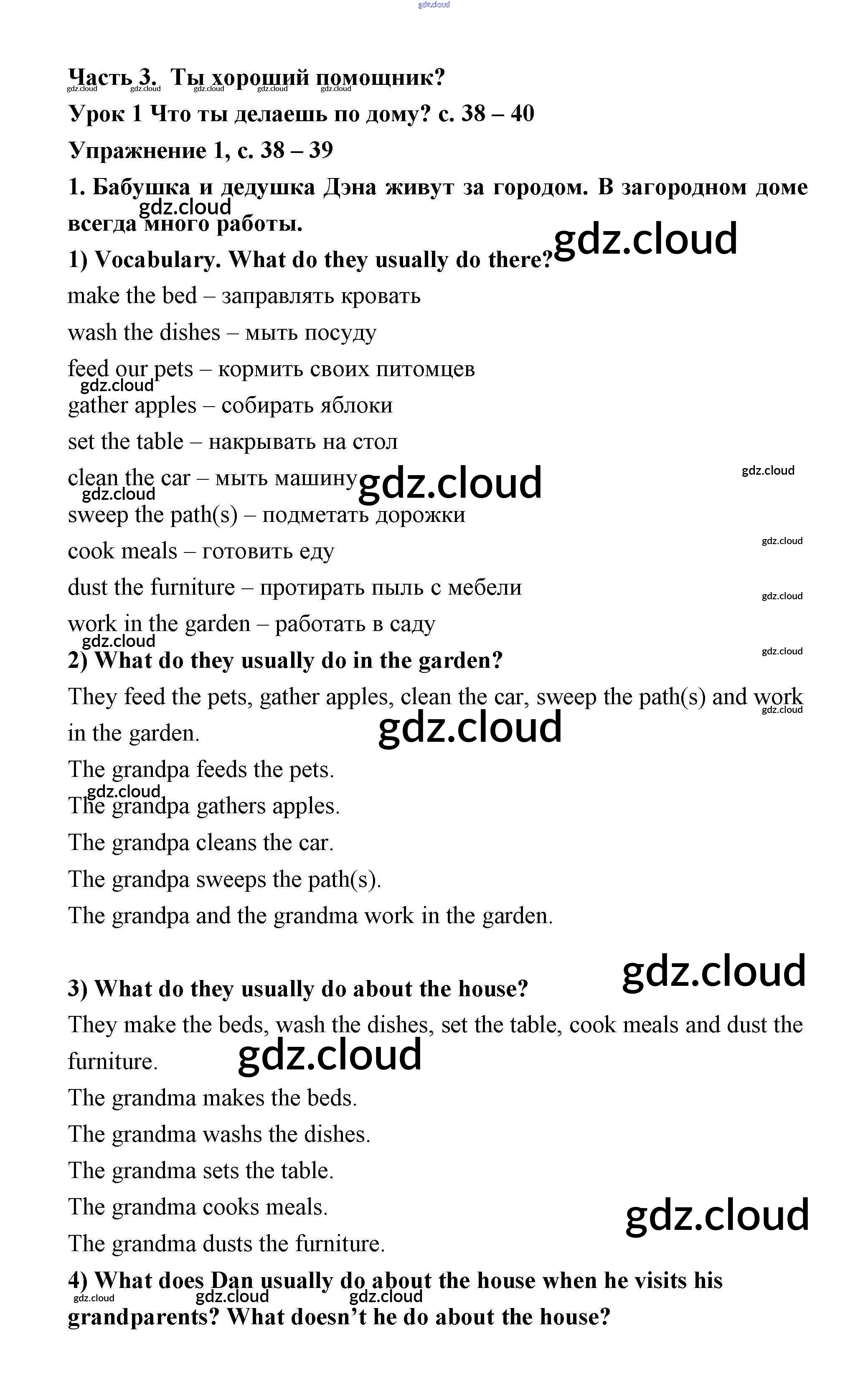 Ответ на задание Lesson 1 (страницы 38 – 40) Учебник Английский язык за 3 (третий) класс Кузовлев, Лапа, Костина 2016 Часть 1, 2