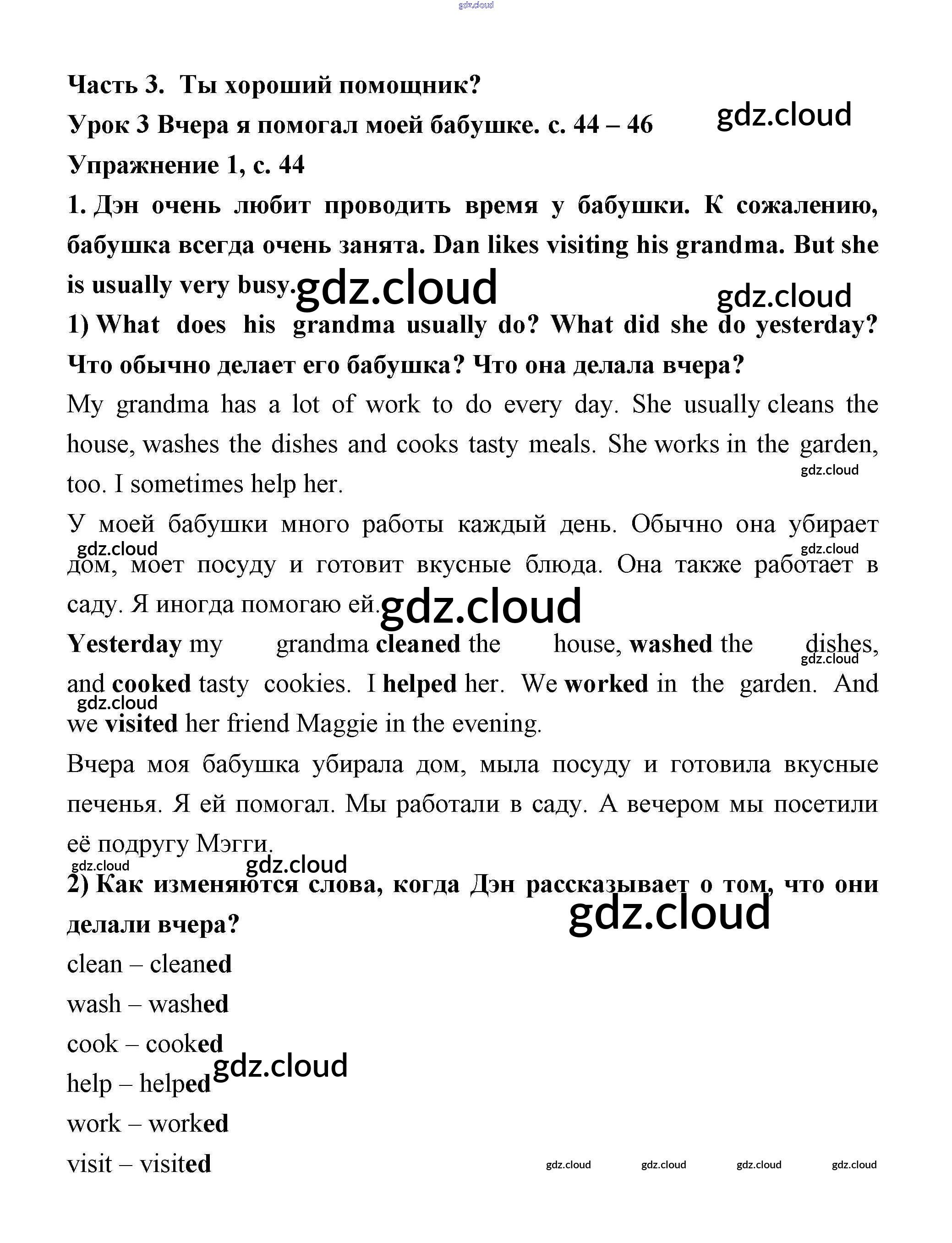 Ответ на задание Lesson 3 (страницы 44 – 46) Учебник Английский язык за 3 (третий) класс Кузовлев, Лапа, Костина 2016 Часть 1, 2