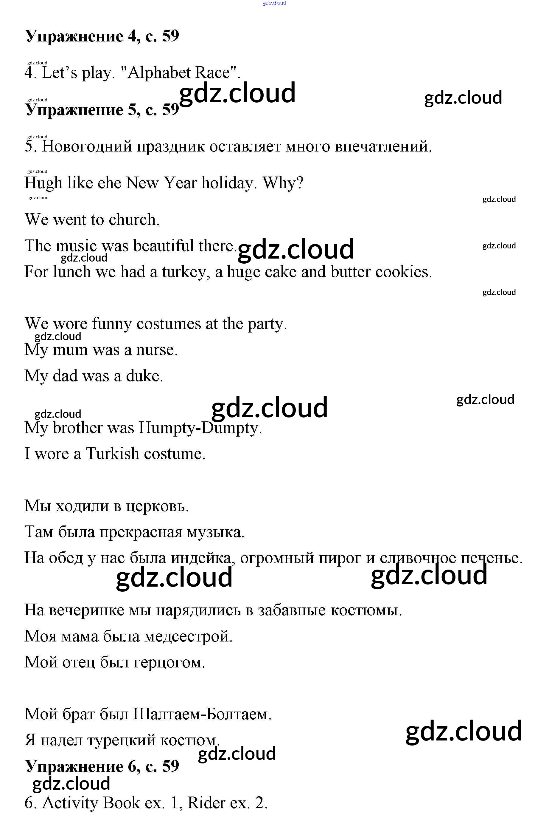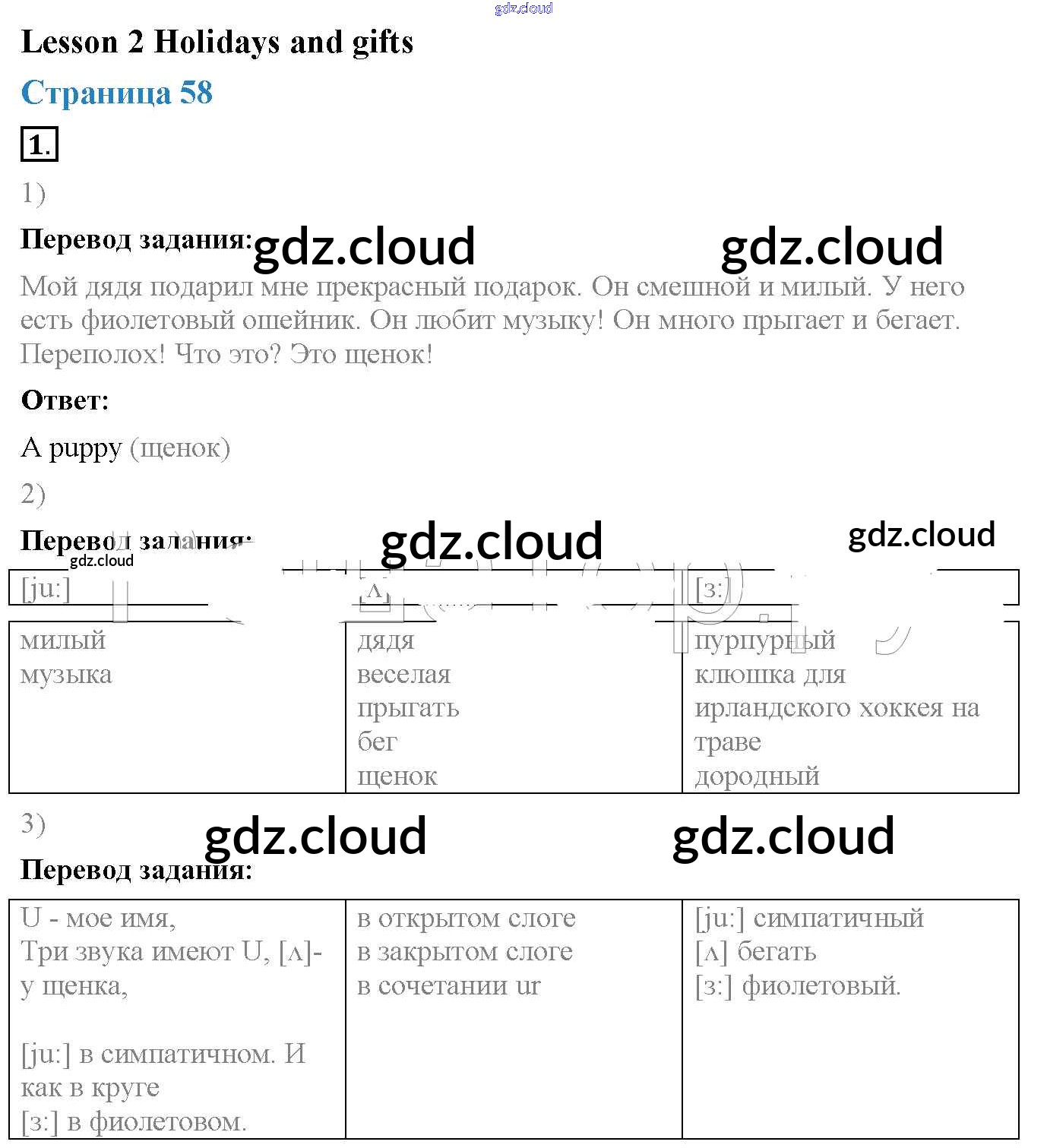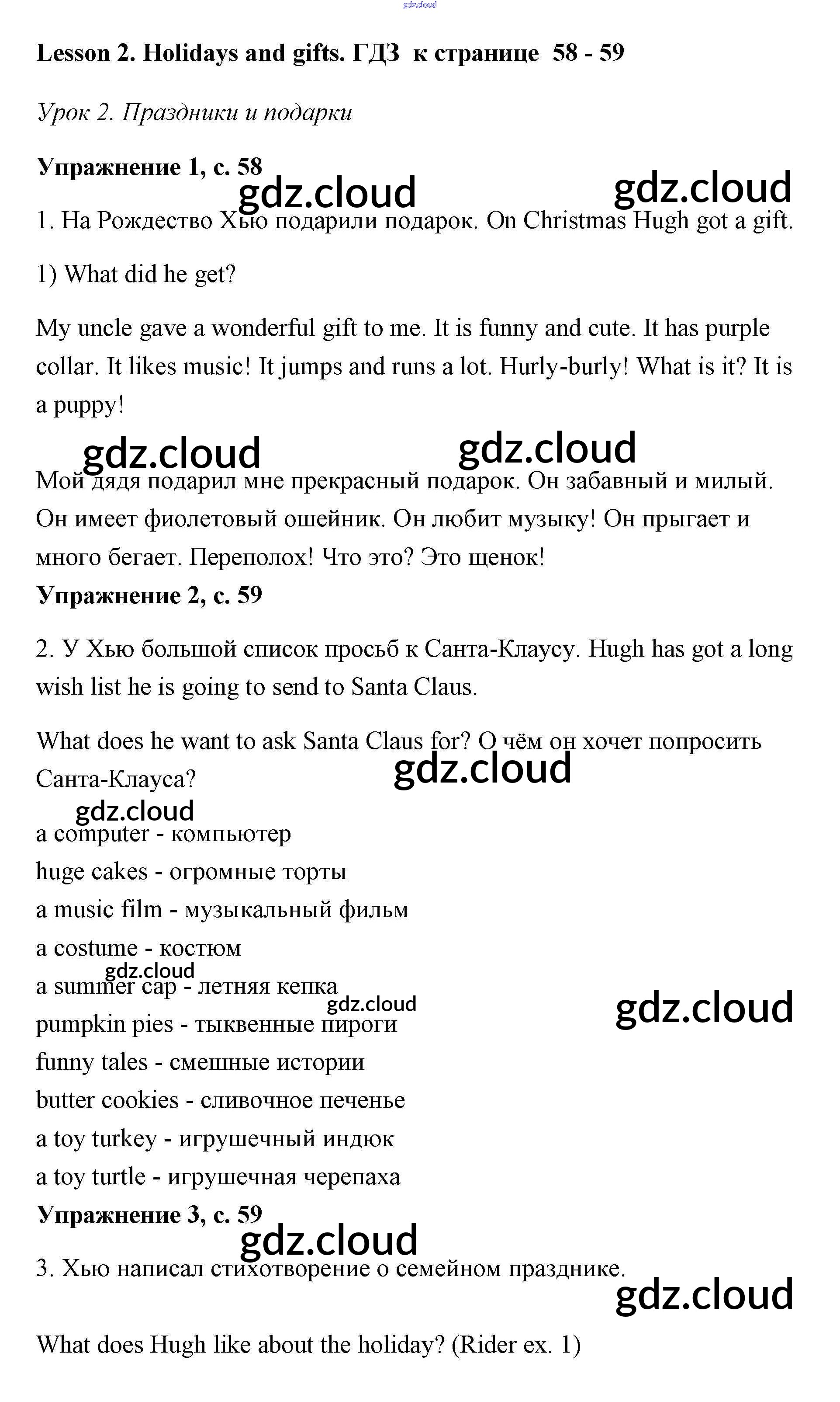 Ответ на задание Lesson 2 (страницы 58 – 59) Учебник Английский язык за 3 (третий) класс Кузовлев, Лапа, Костина 2016 Часть 1, 2