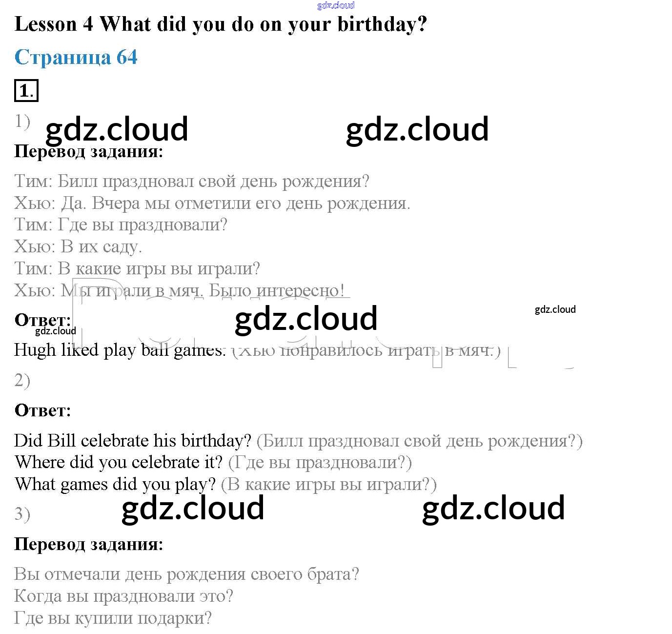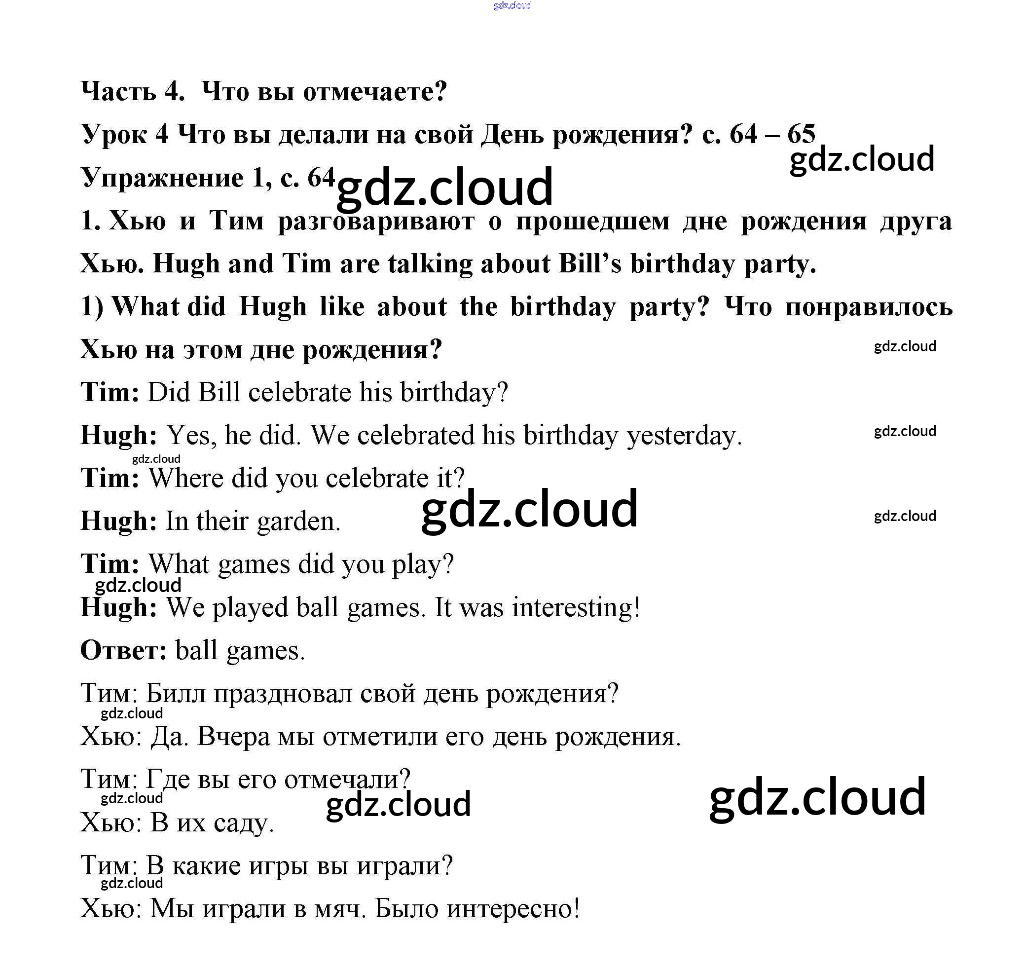 Ответ на задание Lesson 4 (страницы 64 – 66) Учебник Английский язык за 3 (третий) класс Кузовлев, Лапа, Костина 2016 Часть 1, 2
