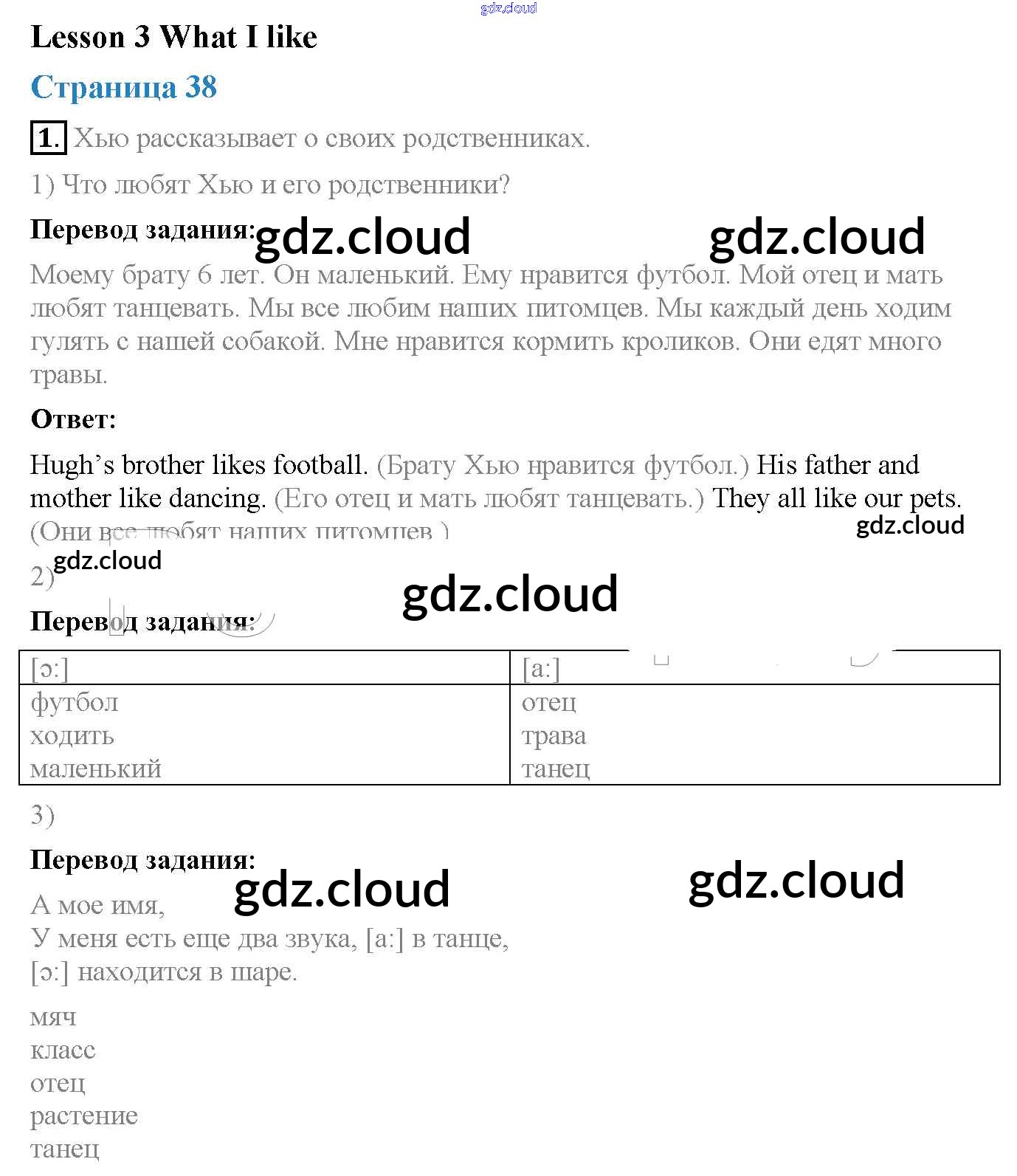 Ответ на задание Lesson 3 (страницы 38 – 40) Учебник Английский язык за 3 (третий) класс Кузовлев, Лапа, Костина 2016 Часть 1, 2
