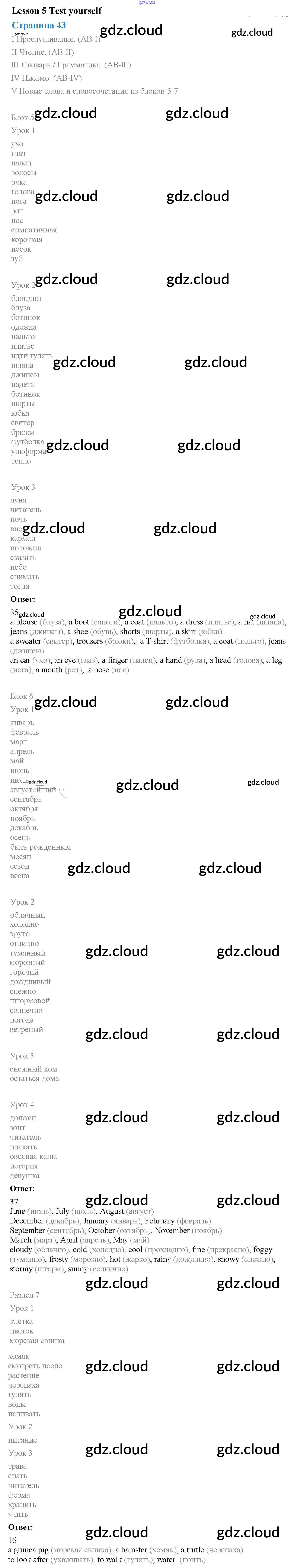 Ответ на задание Lesson 5 (страницы 43 – 44) Учебник Английский язык за 3 (третий) класс Кузовлев, Лапа, Костина 2016 Часть 1, 2