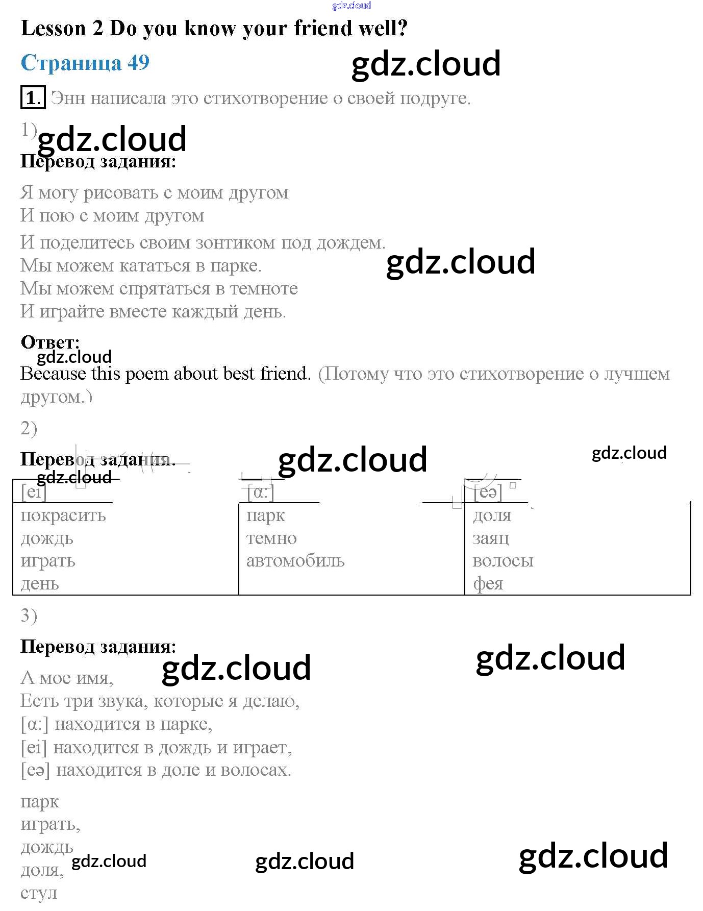 Ответ на задание Lesson 2 (страницы 49 – 50) Учебник Английский язык за 3 (третий) класс Кузовлев, Лапа, Костина 2016 Часть 1, 2