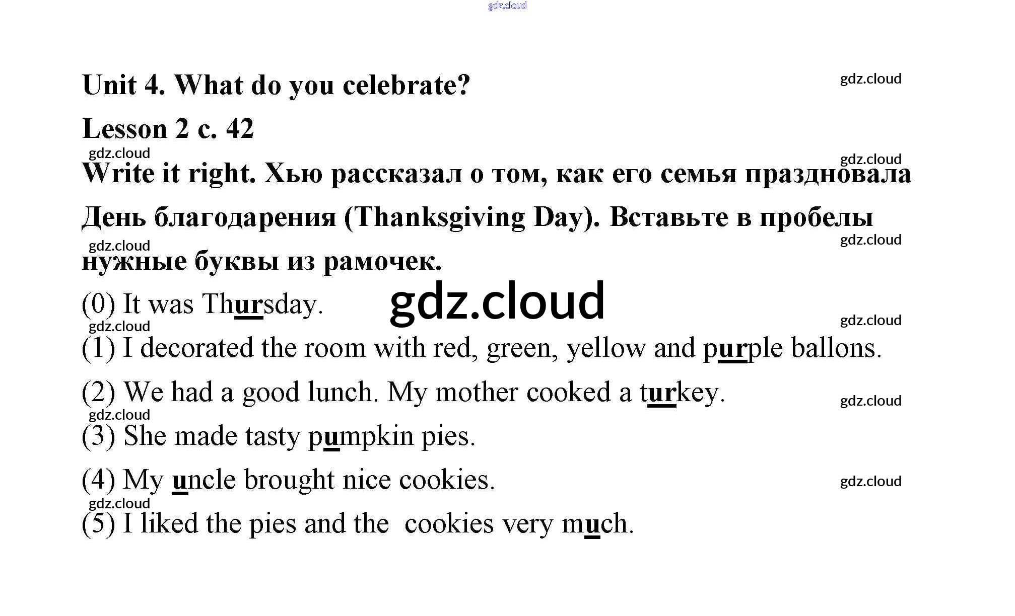 Ответ на задание Lesson 2 (страница 42) Рабочая тетрадь Английский язык за 3 (третий) класс Кузовлев, Лапа, Костина, Кузнецова 2016