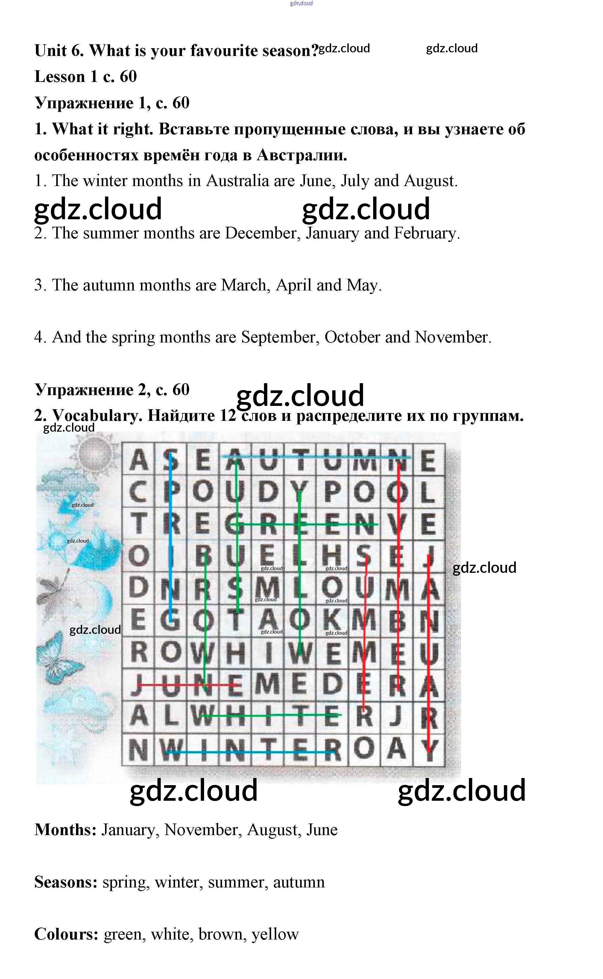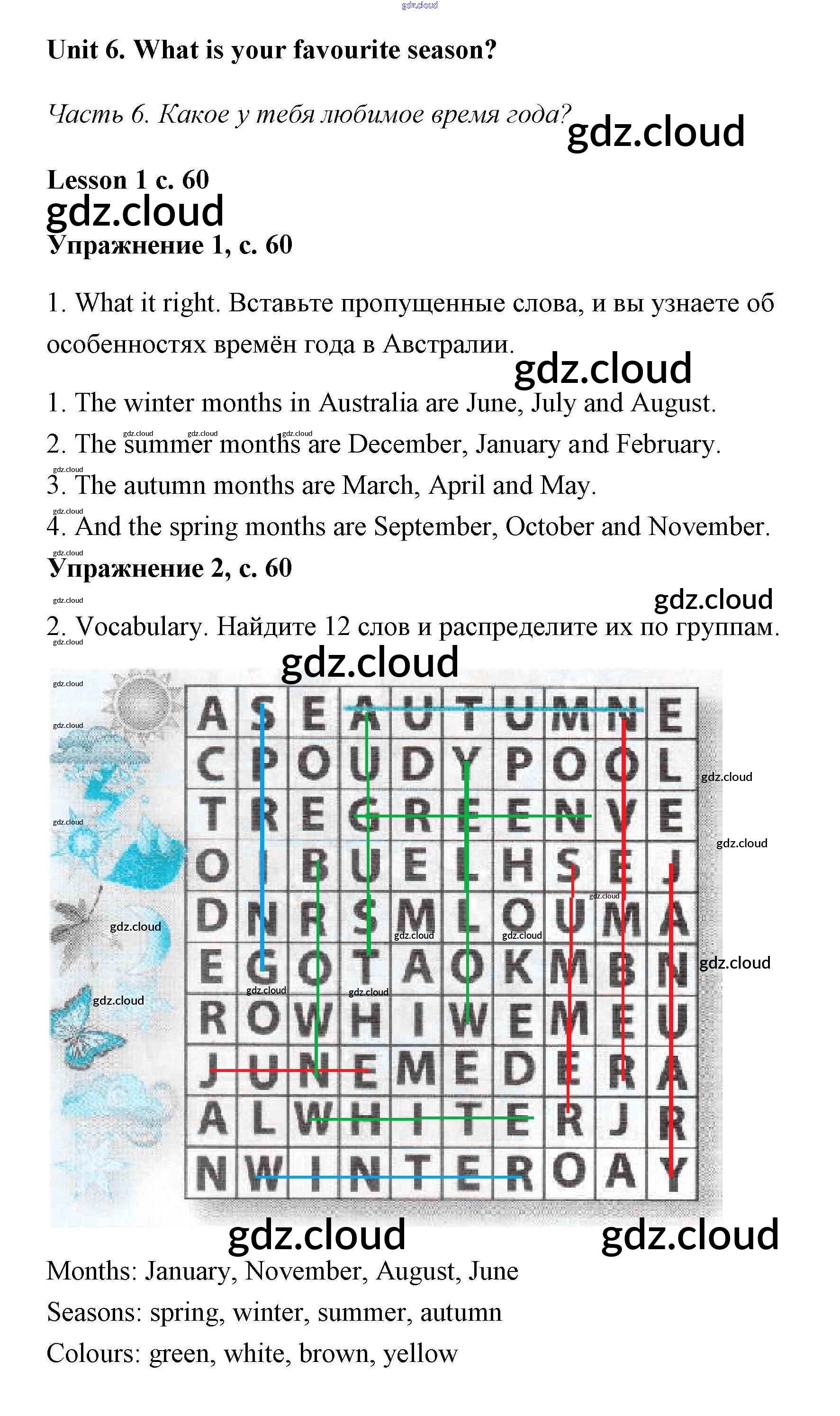 Ответ на задание Lesson 1 (страница 60) Рабочая тетрадь Английский язык за 3 (третий) класс Кузовлев, Лапа, Костина, Кузнецова 2016