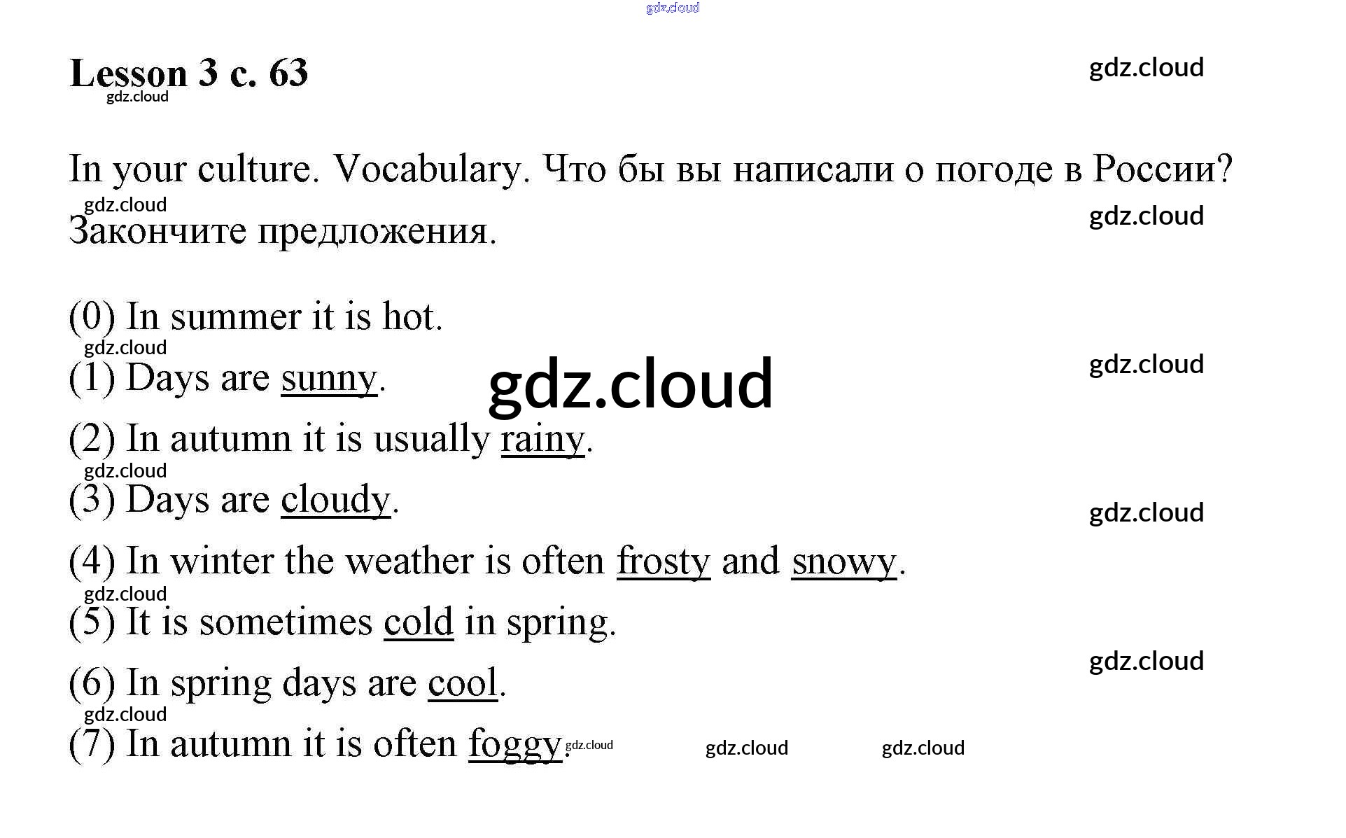 Ответ на задание Lesson 3 (страница 63) Рабочая тетрадь Английский язык за 3 (третий) класс Кузовлев, Лапа, Костина, Кузнецова 2016