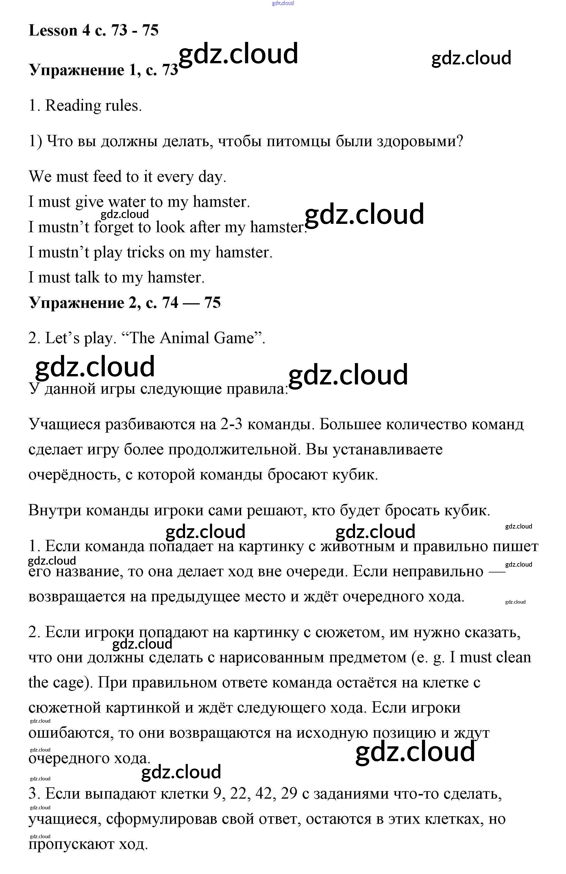 Ответ на задание Lesson 4 (страницы 73-75) Рабочая тетрадь Английский язык за 3 (третий) класс Кузовлев, Лапа, Костина, Кузнецова 2016