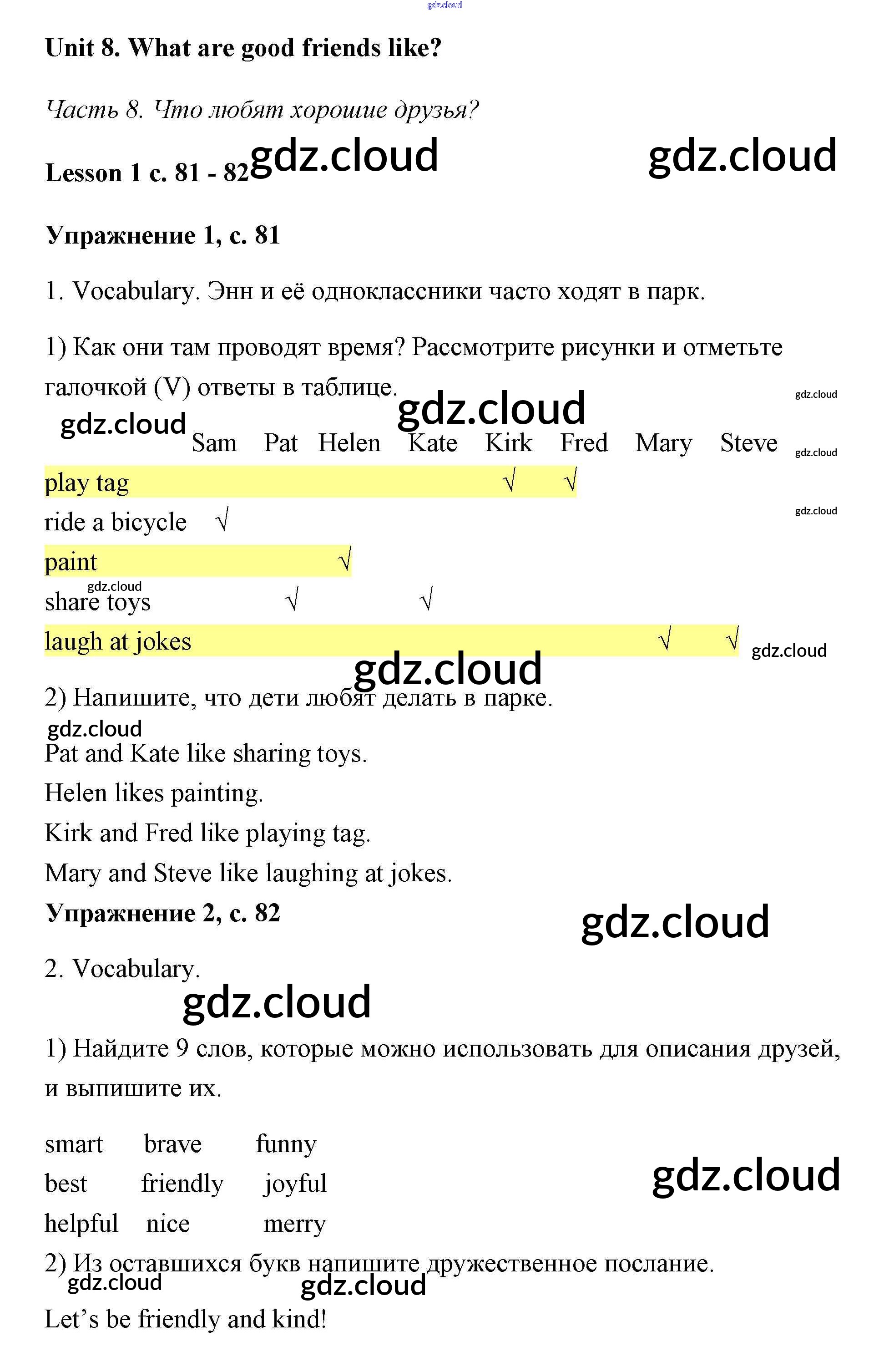 unit 8 (lesson) / lesson 1 (страницы 81-82)