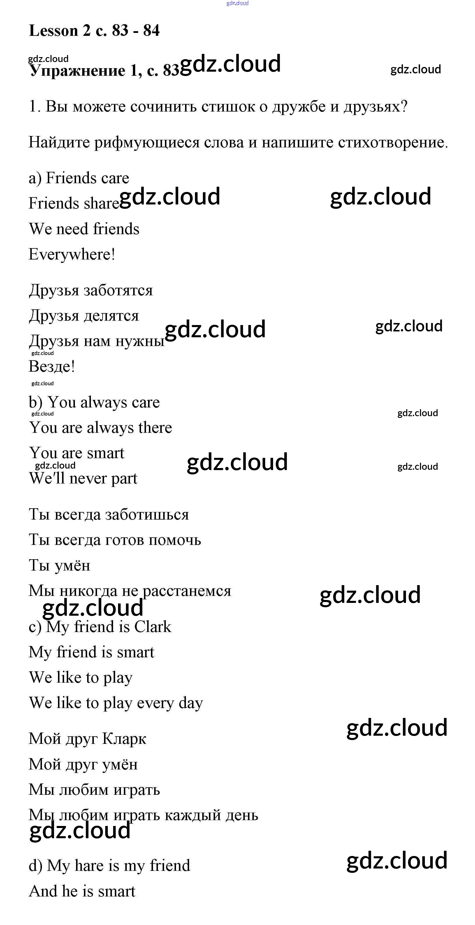 Ответ на задание Lesson 2 (страницы 83-84) Рабочая тетрадь Английский язык за 3 (третий) класс Кузовлев, Лапа, Костина, Кузнецова 2016