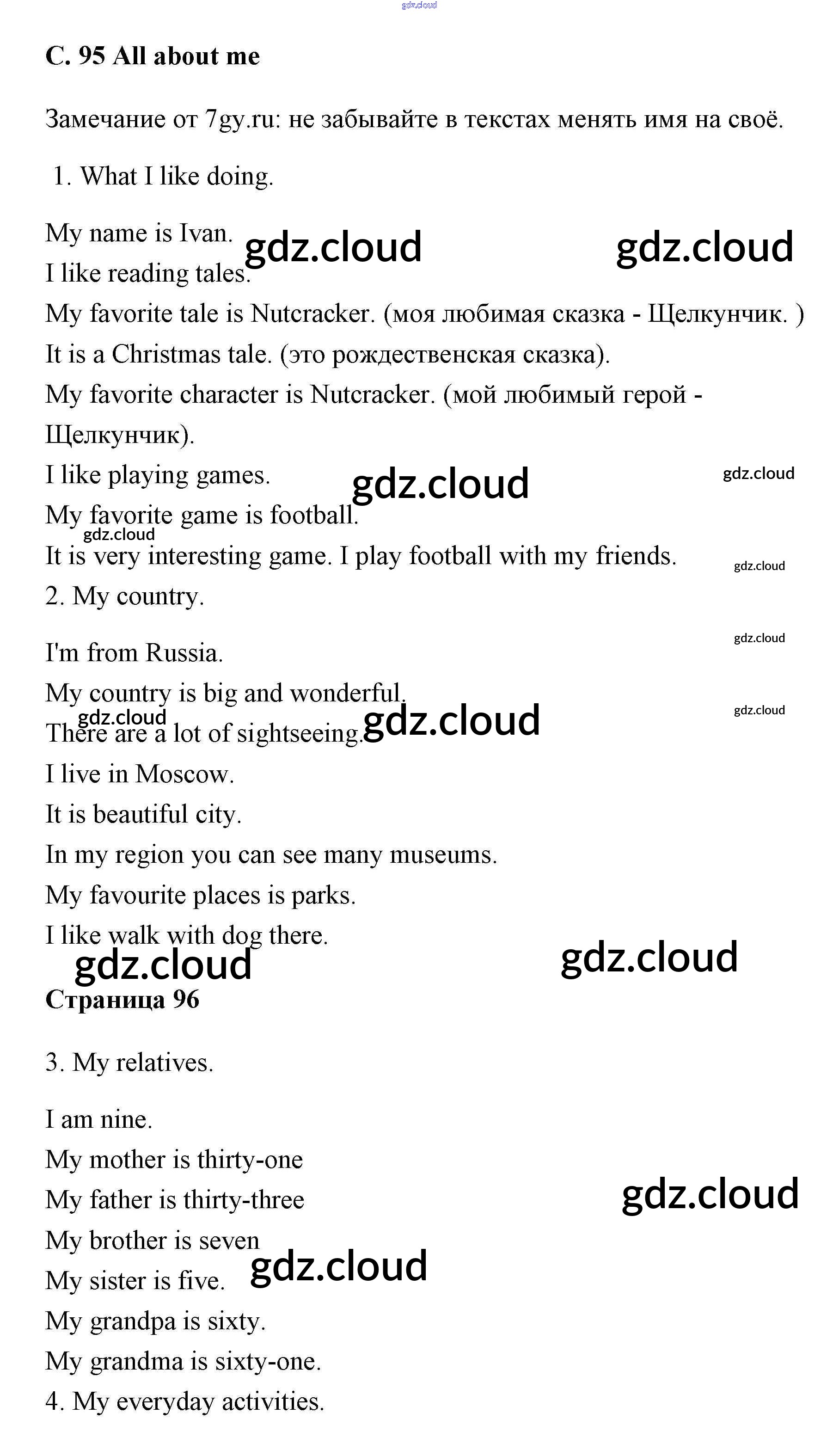 Ответы к All about me (Страницы) по Английскому языку 3 класс Рабочая тетрадь Кузовлев Просвещение