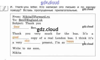 Ответ на задание F Рабочая тетрадь Английский язык за 3 (третий) класс Вербицкая, Эббс, Уорелл Forward 2016
