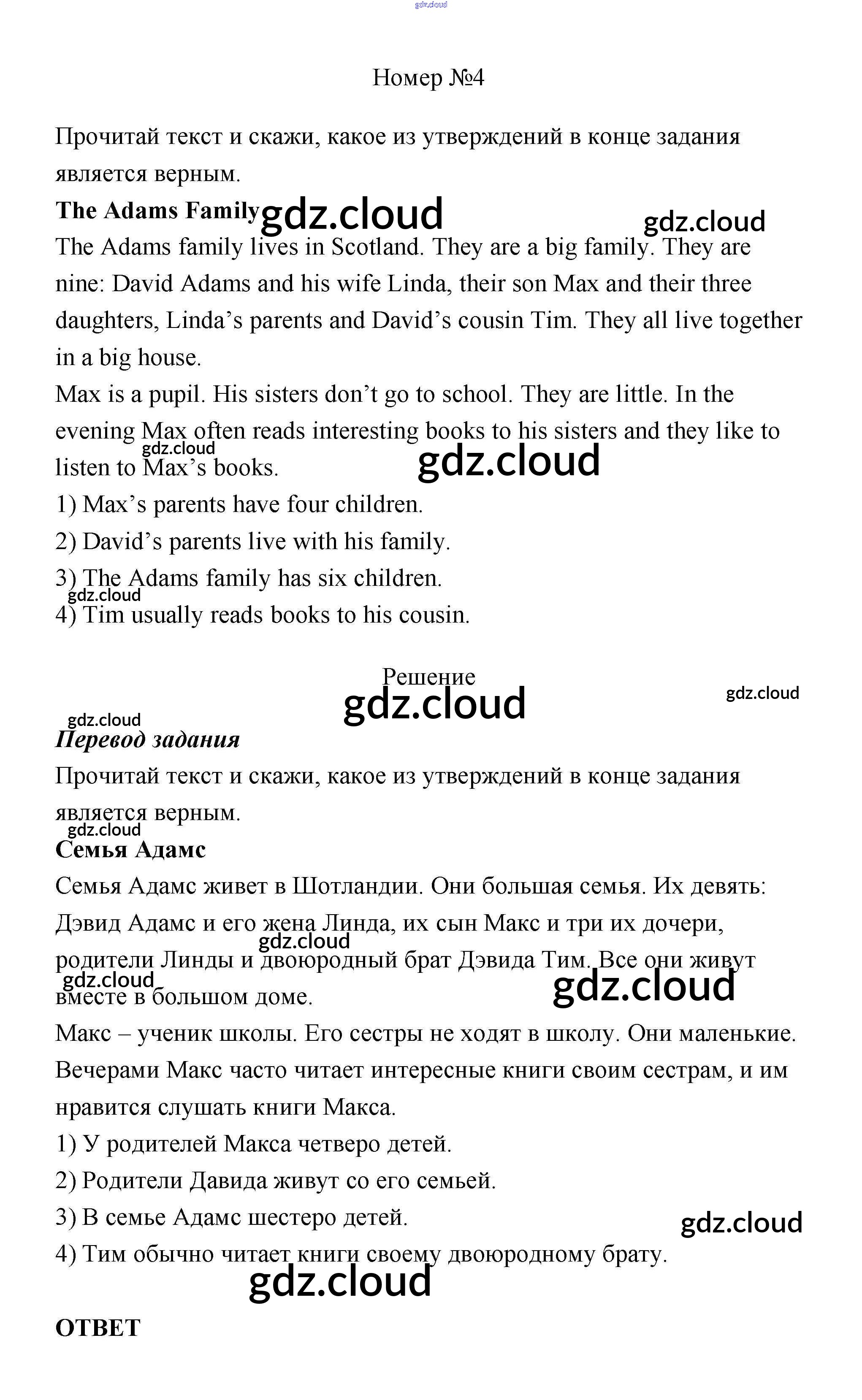 Ответ на задание 4 Учебник Английский язык за 4 (четвертый) класс Афанасьева, Михеева Rainbow 2016 Часть 1, 2