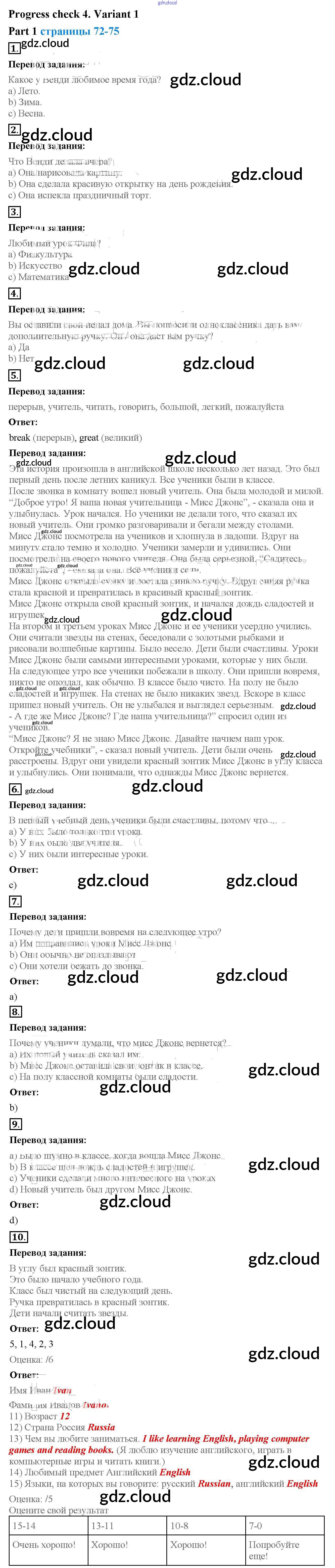Variant 1 Progress check 4 по Английскому языку 4 класс Рабочая тетрадь Биболетова Enjoy English Аст/Астрель