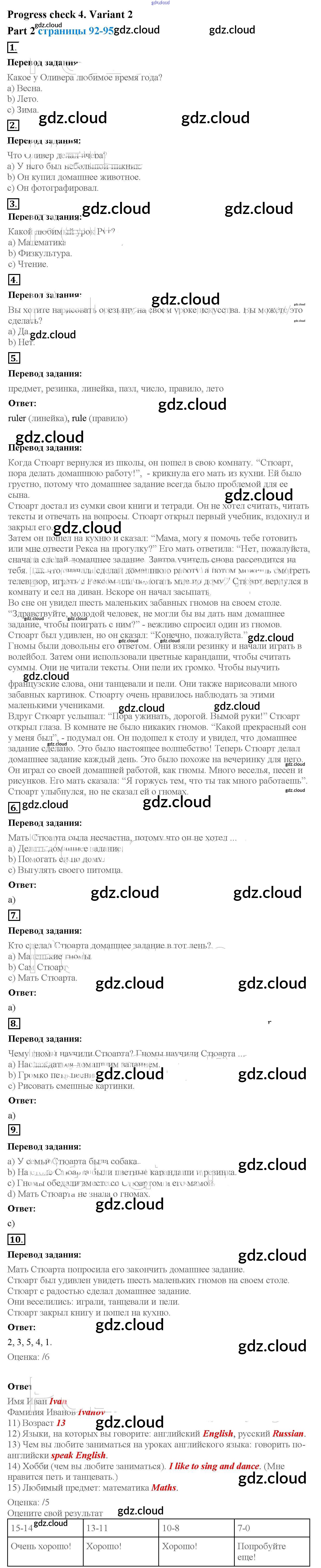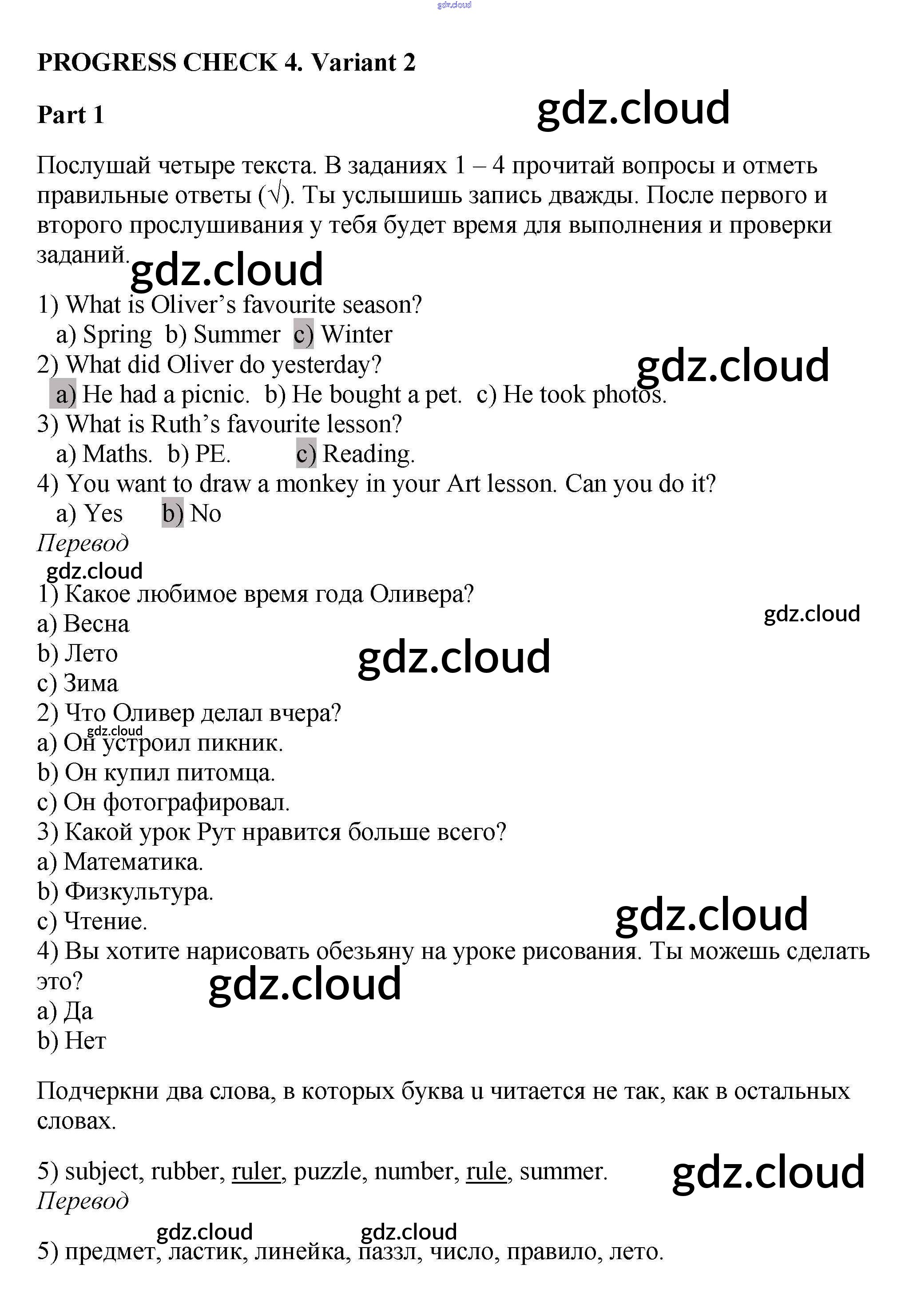 Variant 2 Progress check 4 по Английскому языку 4 класс Рабочая тетрадь Биболетова Enjoy English Аст/Астрель