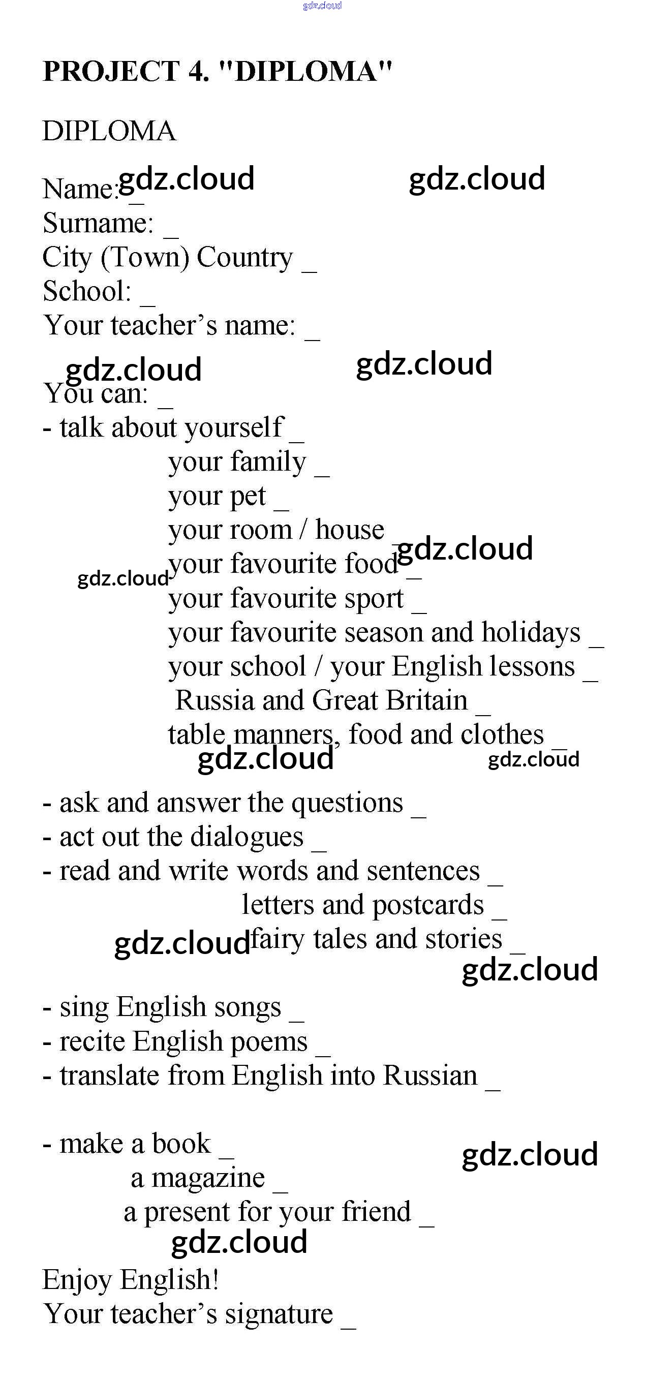 Project 4 Ответы к Unit 7 по Английскому языку 4 класс Рабочая тетрадь Биболетова Enjoy English Аст/Астрель