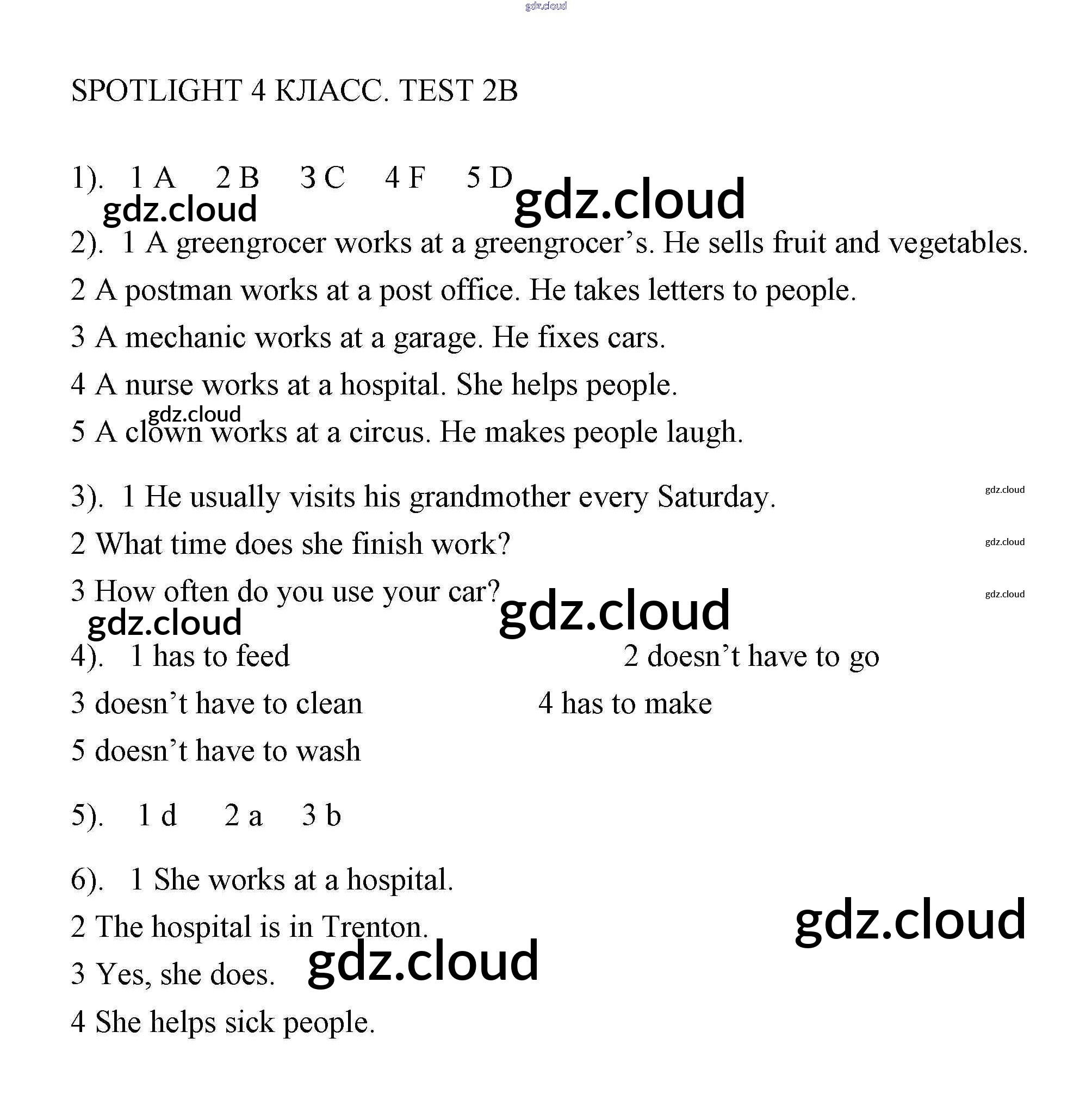 Ответ на задание 2B Контрольные работы Английский язык за 4 (четвертый) класс Быкова, Эванс, Дули, Поспелова Spotlight 2018