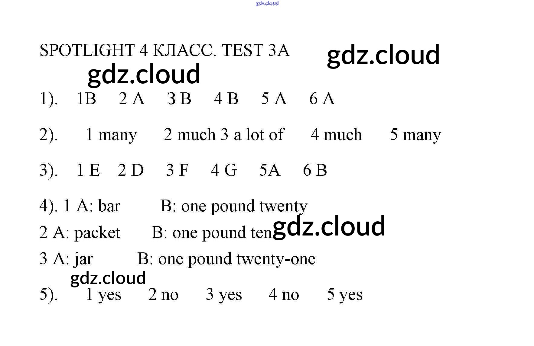 Ответ на задание 3A Контрольные работы Английский язык за 4 (четвертый) класс Быкова, Эванс, Дули, Поспелова Spotlight 2018
