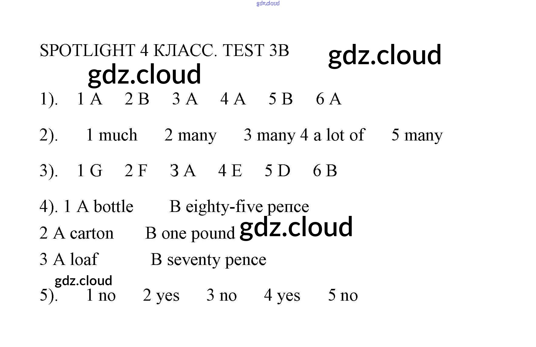 Ответ на задание 3B Контрольные работы Английский язык за 4 (четвертый) класс Быкова, Эванс, Дули, Поспелова Spotlight 2018