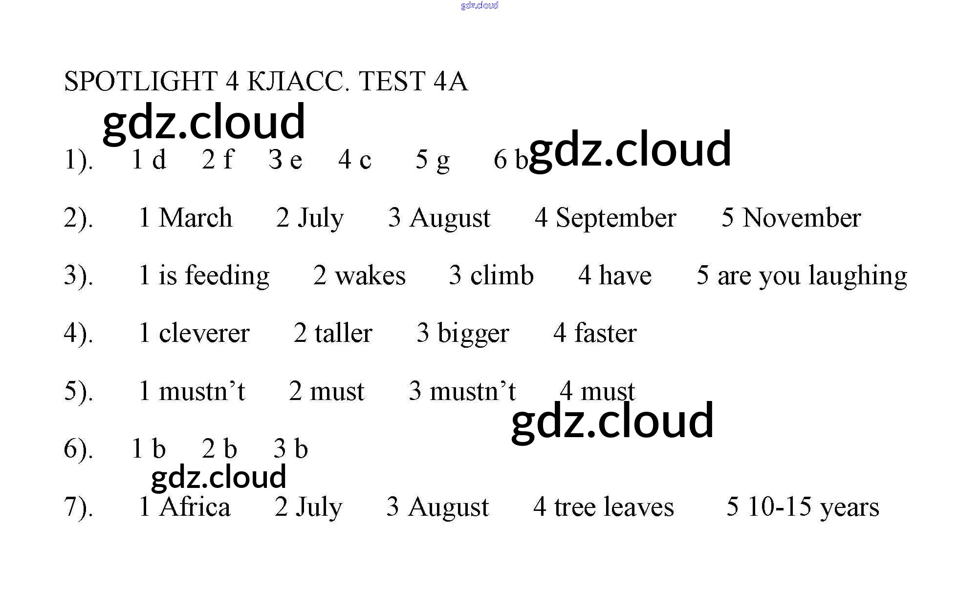 Ответ на задание 4A Контрольные работы Английский язык за 4 (четвертый) класс Быкова, Эванс, Дули, Поспелова Spotlight 2018