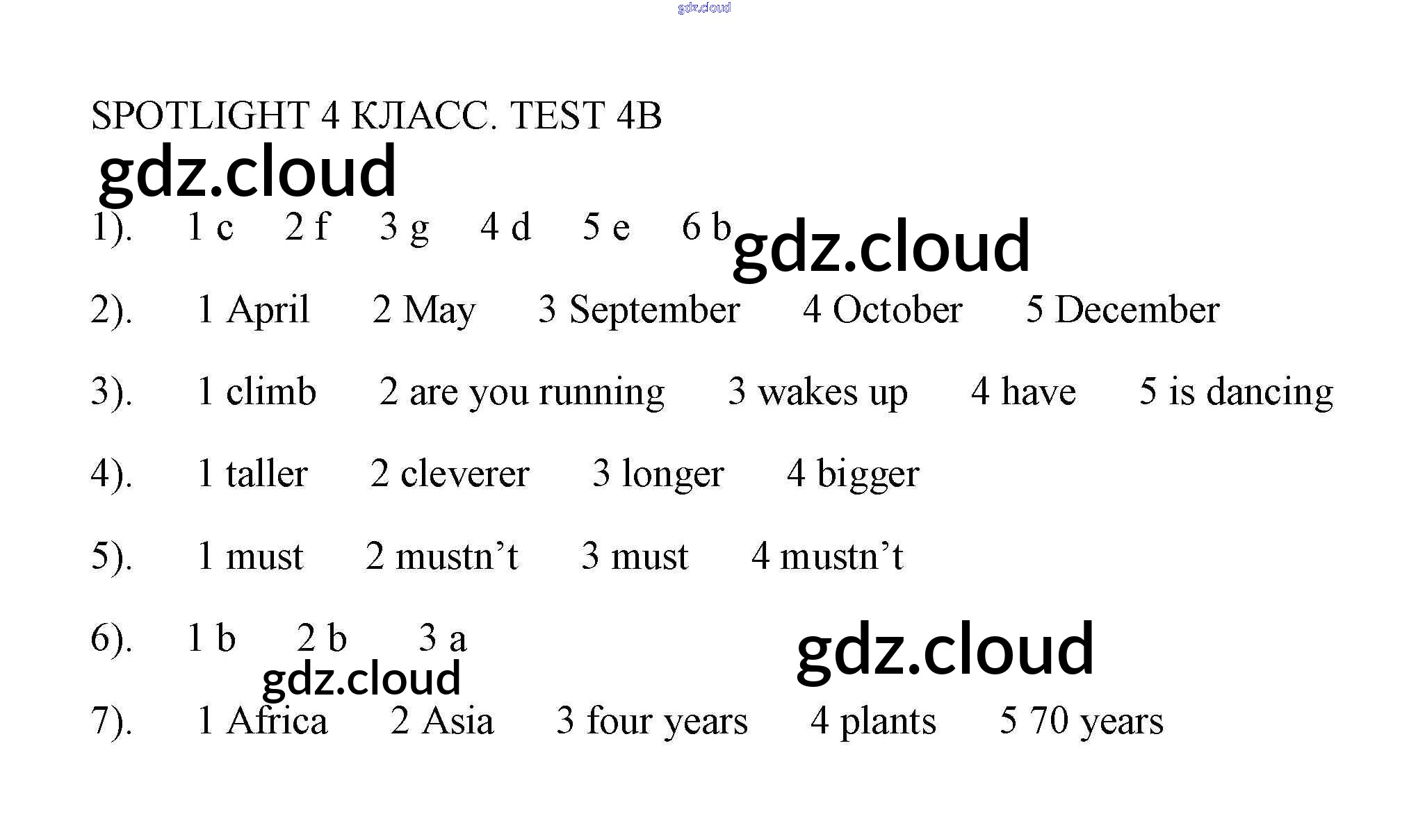 Ответ на задание 4B Контрольные работы Английский язык за 4 (четвертый) класс Быкова, Эванс, Дули, Поспелова Spotlight 2018