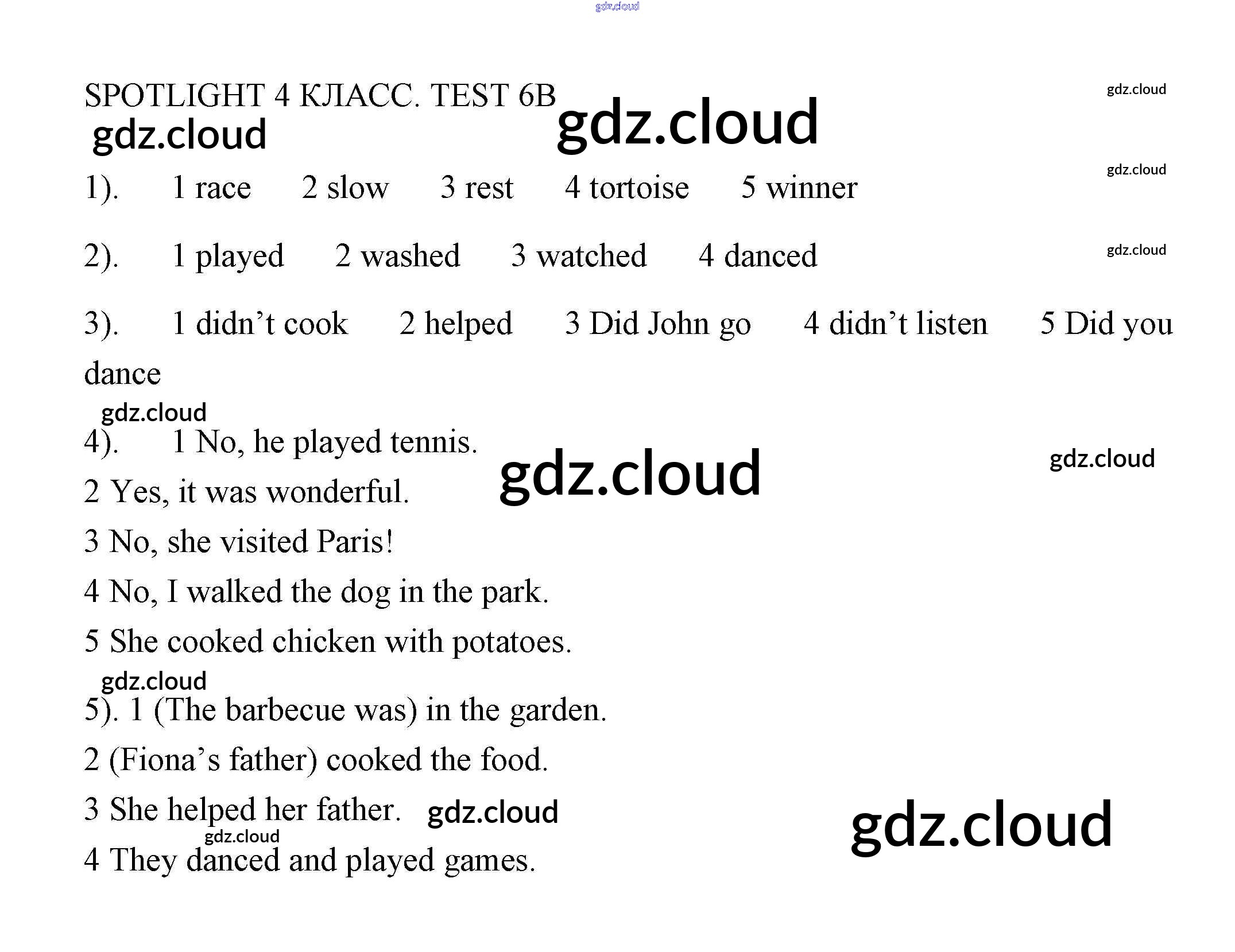 Ответ на задание 6B Контрольные работы Английский язык за 4 (четвертый) класс Быкова, Эванс, Дули, Поспелова Spotlight 2018