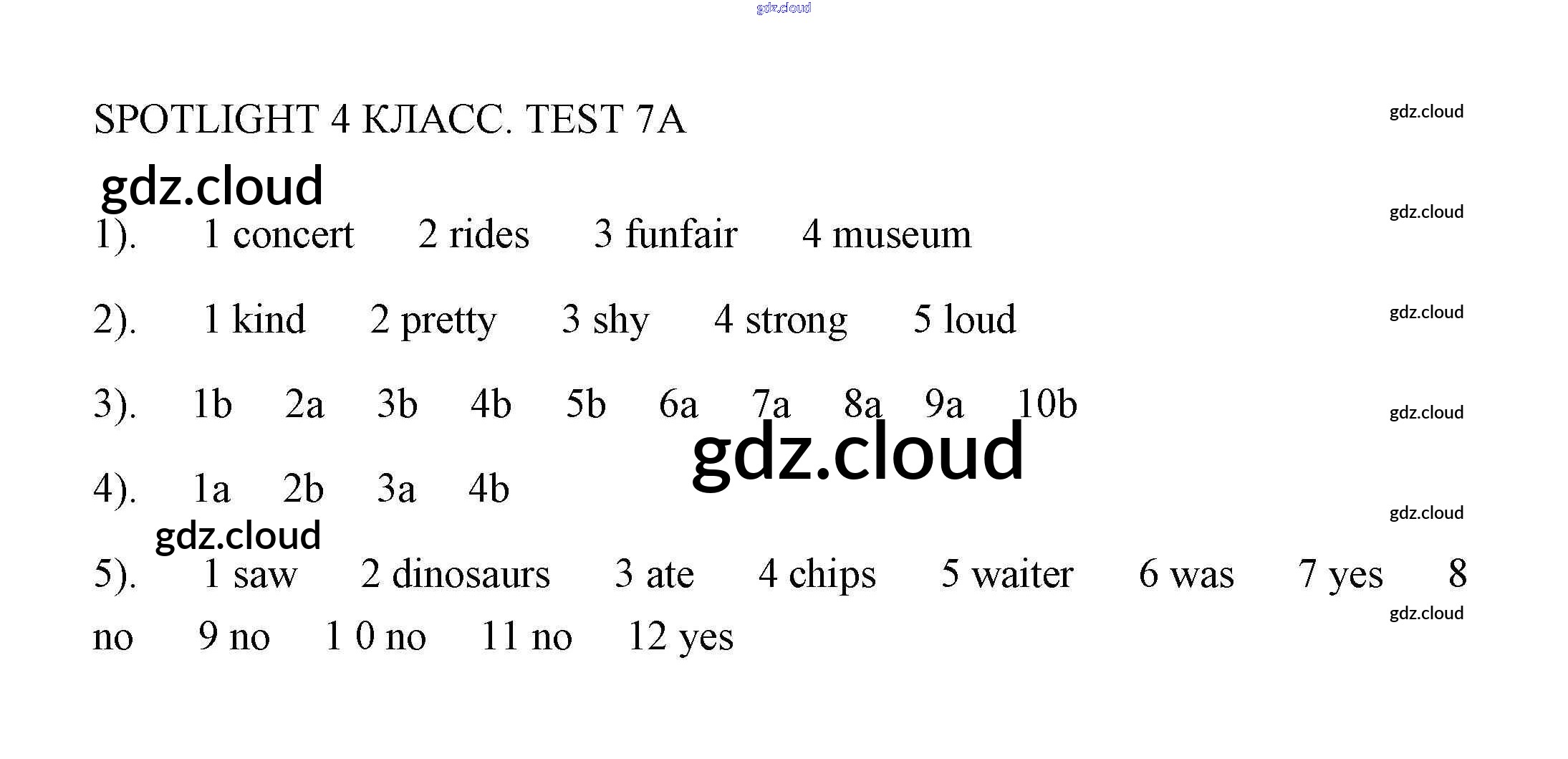 Ответ на задание 7A Контрольные работы Английский язык за 4 (четвертый) класс Быкова, Эванс, Дули, Поспелова Spotlight 2018