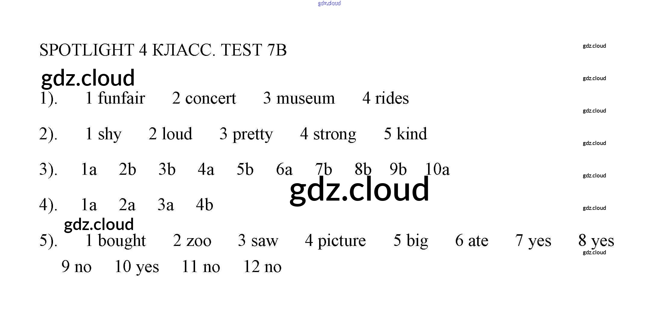 Ответ на задание 7B Контрольные работы Английский язык за 4 (четвертый) класс Быкова, Эванс, Дули, Поспелова Spotlight 2018