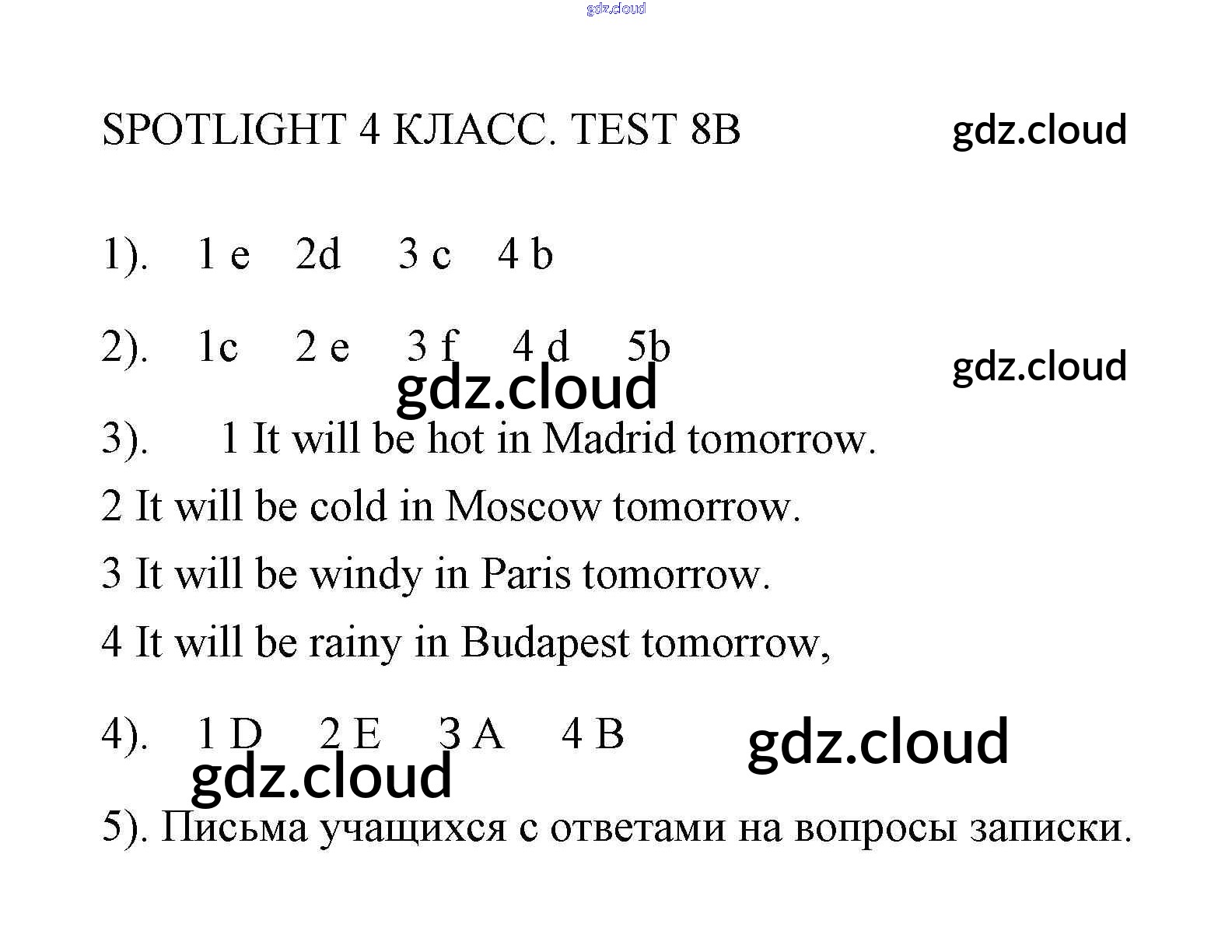 Ответ на задание 8B Контрольные работы Английский язык за 4 (четвертый) класс Быкова, Эванс, Дули, Поспелова Spotlight 2018
