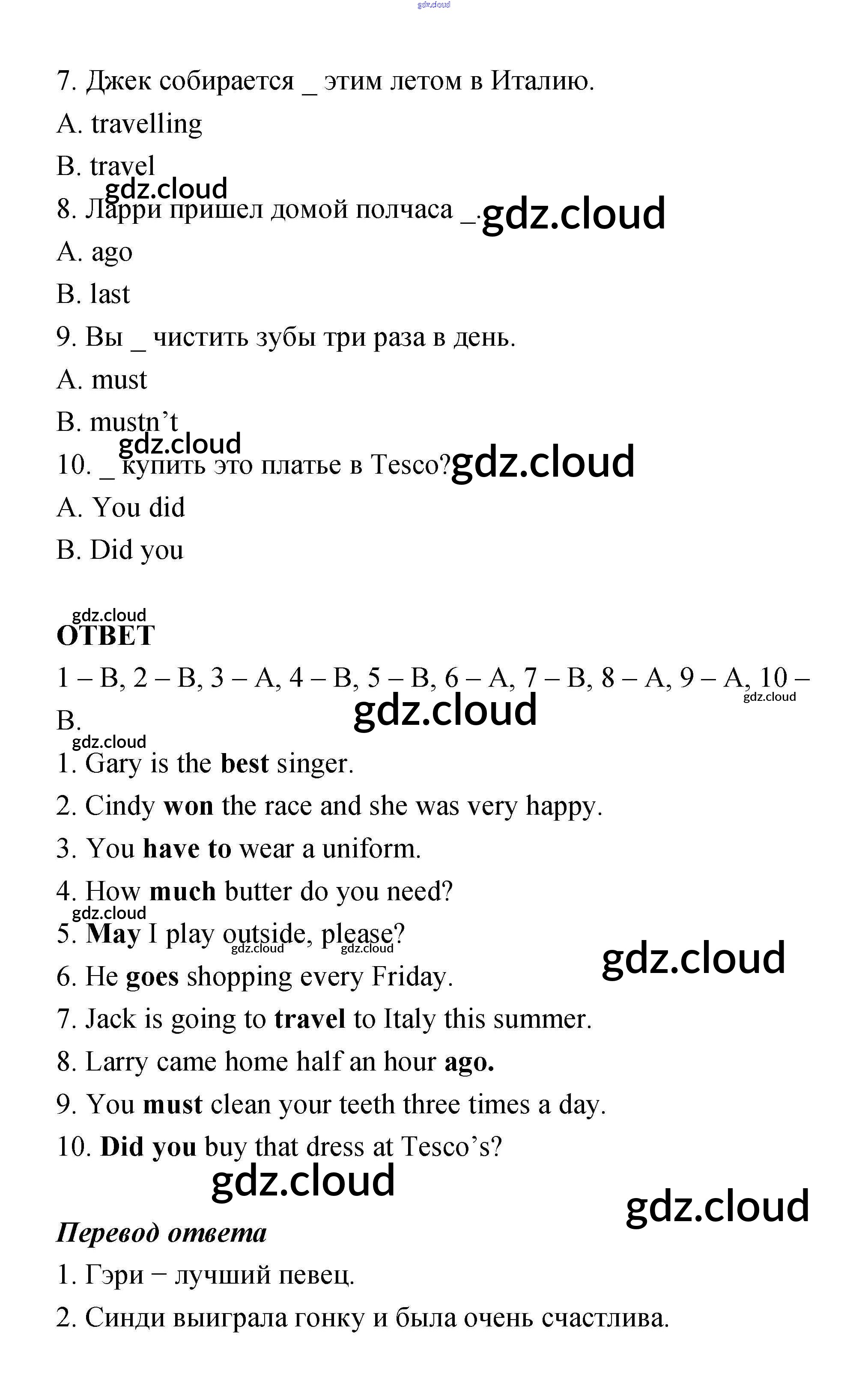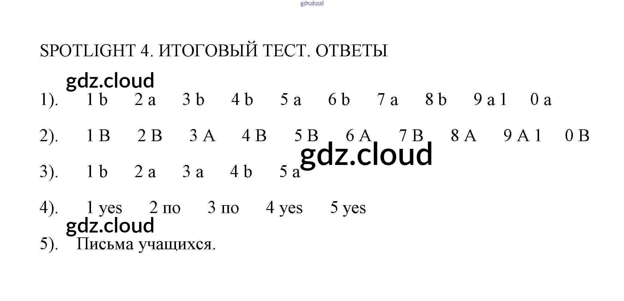 Ответы. Итоговая работа  по Английскому языку 4 класс Контрольные работы Быкова Spotlight   Просвещение