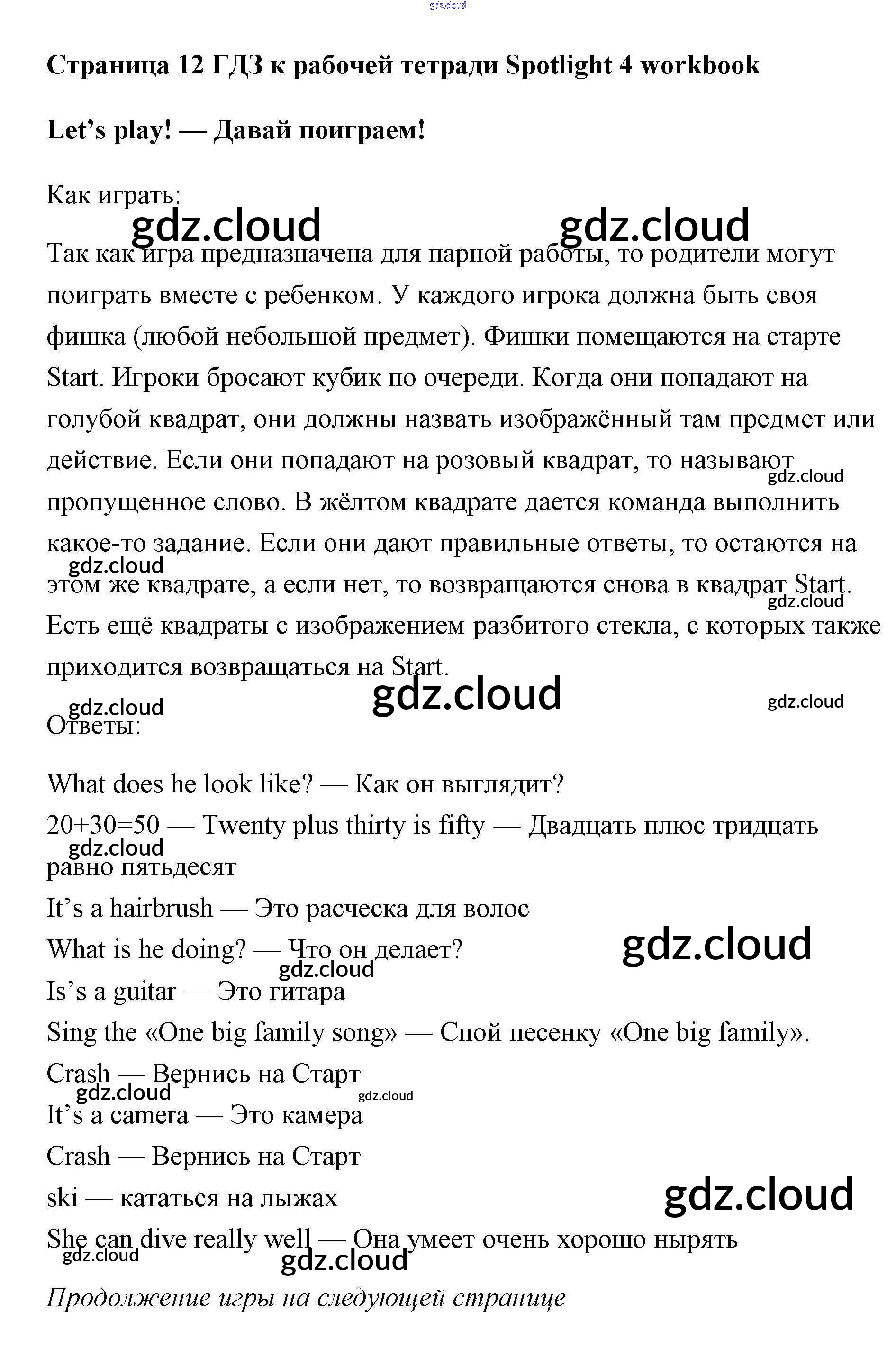 Ответ на задание страница 12 Рабочая тетрадь Английский язык за 4 (четвертый) класс Быкова, Эванс, Дули, Поспелова Spotlight 2017