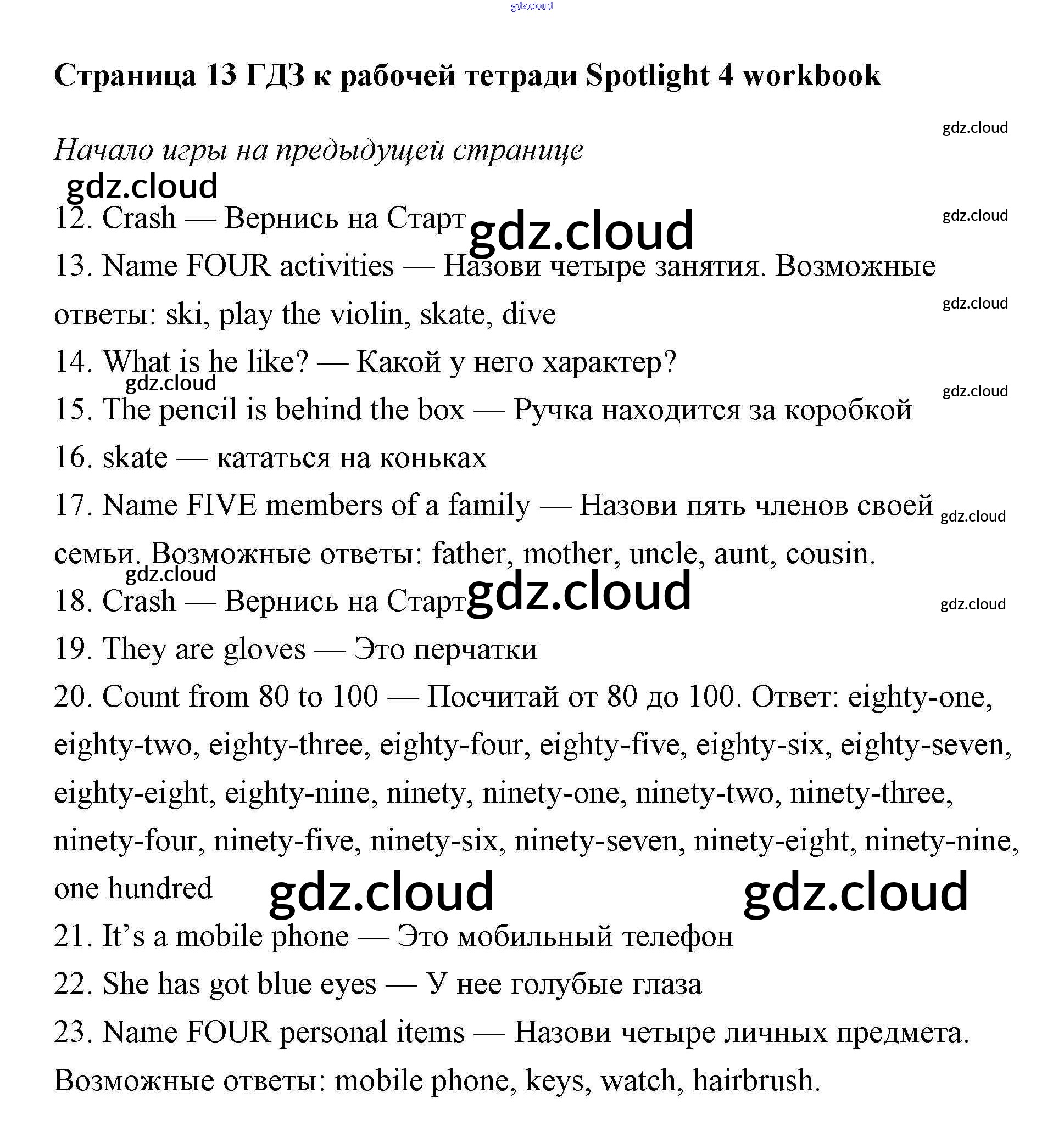 Ответ на задание страница 13 Рабочая тетрадь Английский язык  за 4 (четвертый) класс Быкова, Эванс, Дули, Поспелова Spotlight  2017